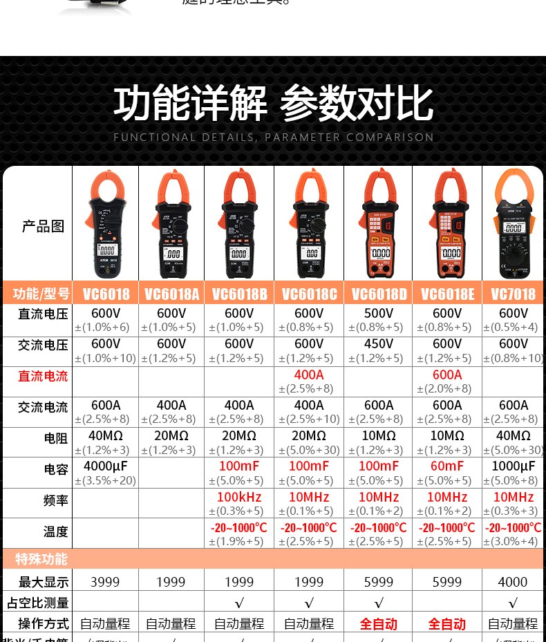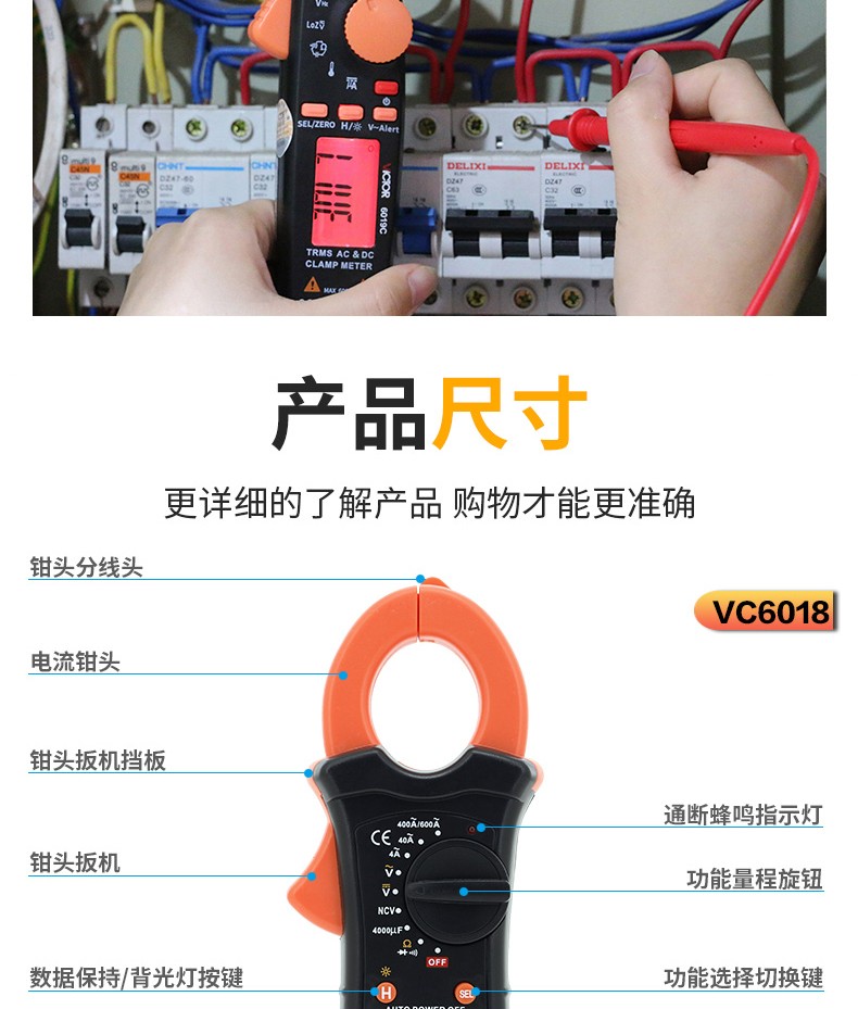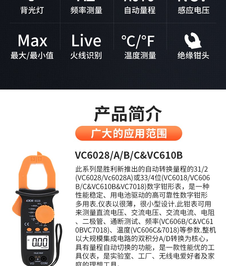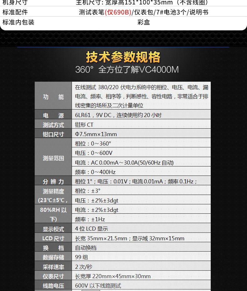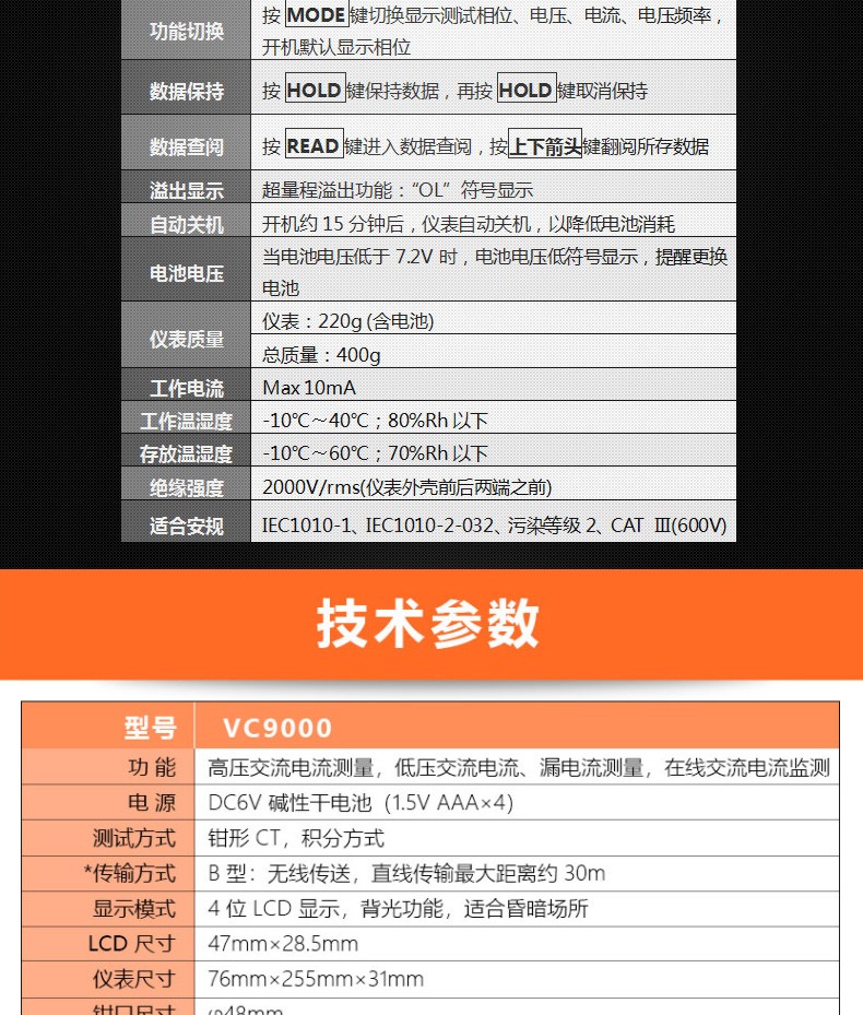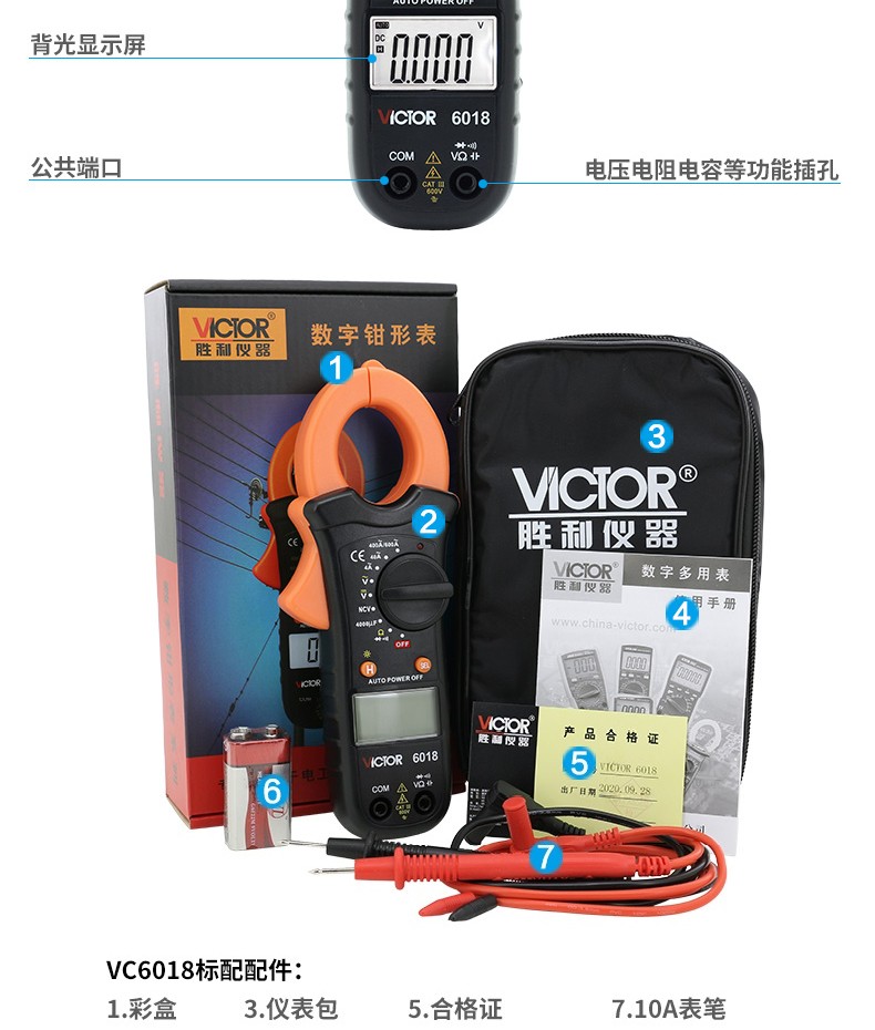 胜利仪器(VICTOR) 胜利钳形表万用表数字高精度全自动防烧钳型电流表钳流电工万能表 VC9000【23KV高压0.1mA-1000A】