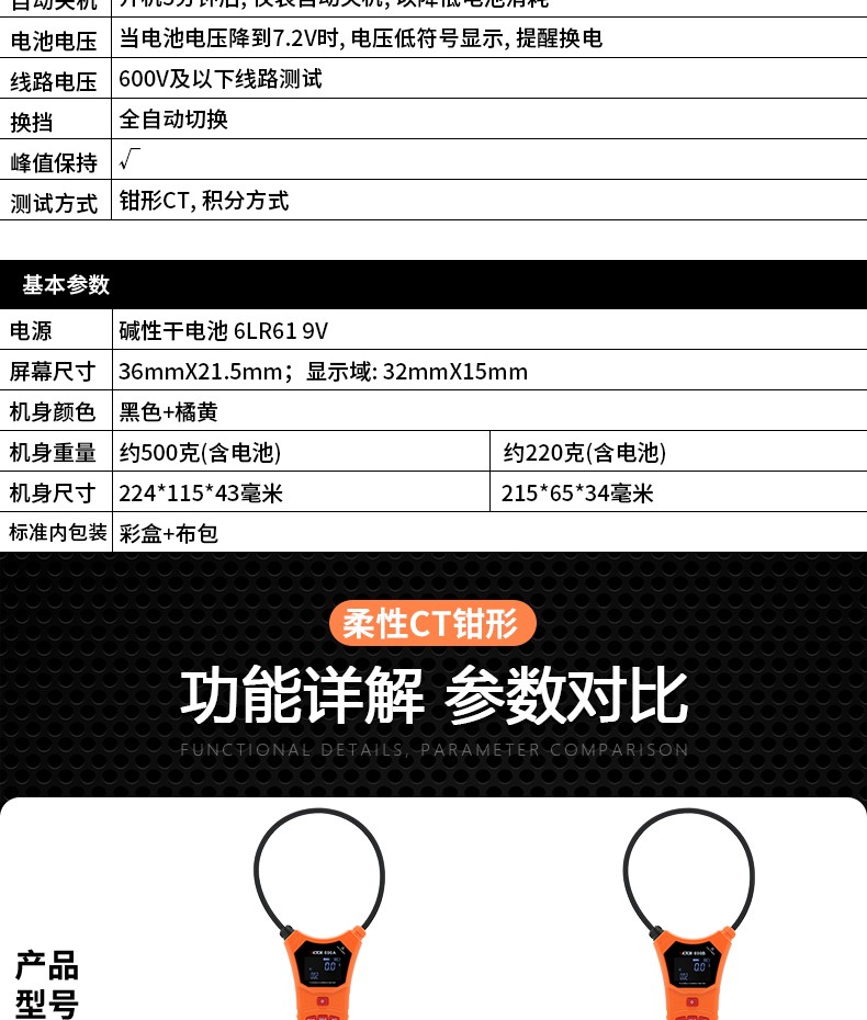 UNI-T优利德 1000A真有效值数字钳形表 UT208B 32cm*15cm*7cm