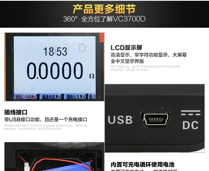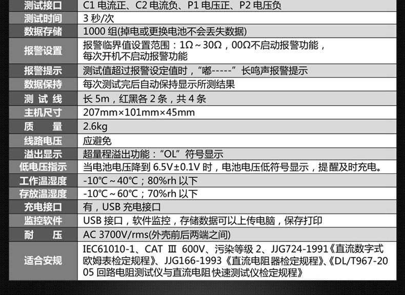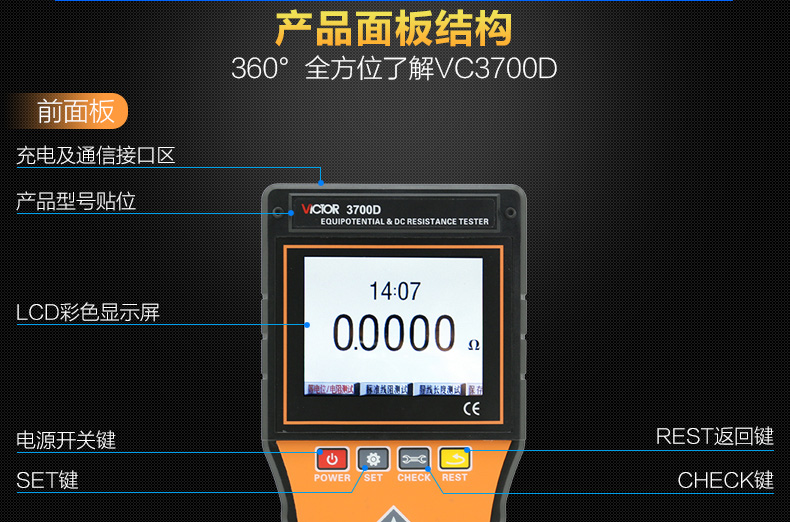 胜利仪器(VICTOR) VC3700D 智能型等电位测试仪 直流低电阻测试仪欧姆表微电阻计