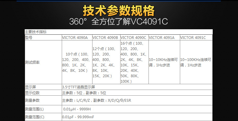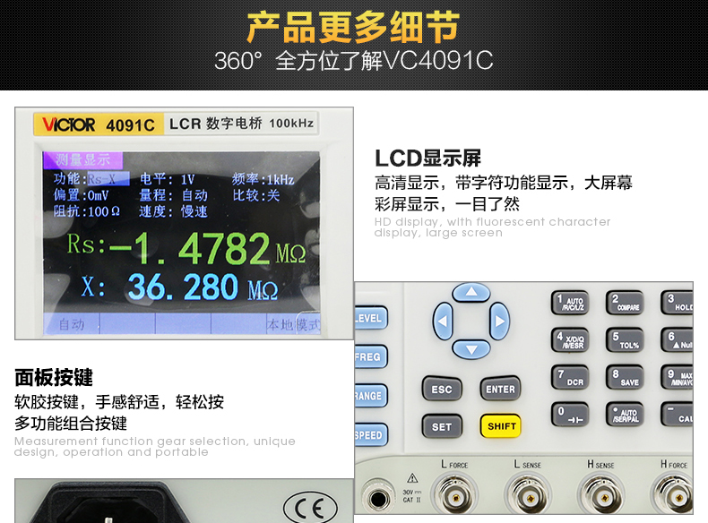 胜利仪器(VICTOR) VC4091C LCR数字电桥测试仪元器件电容电感电阻测量仪