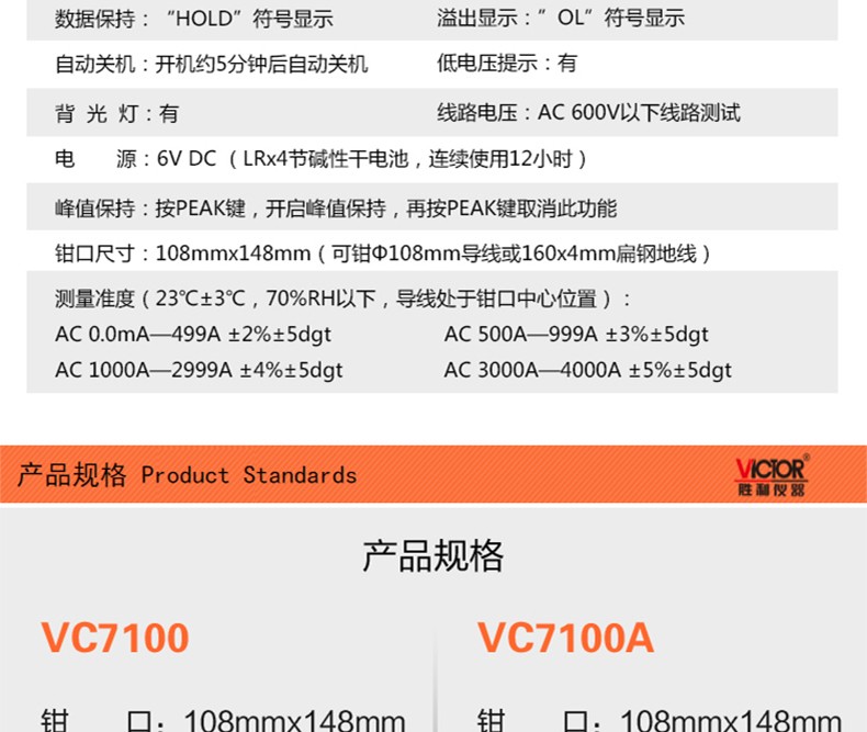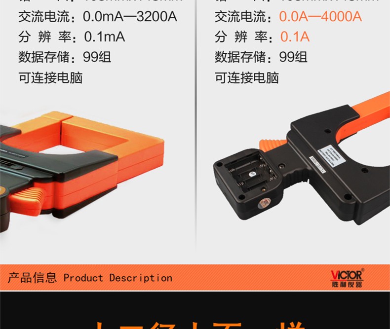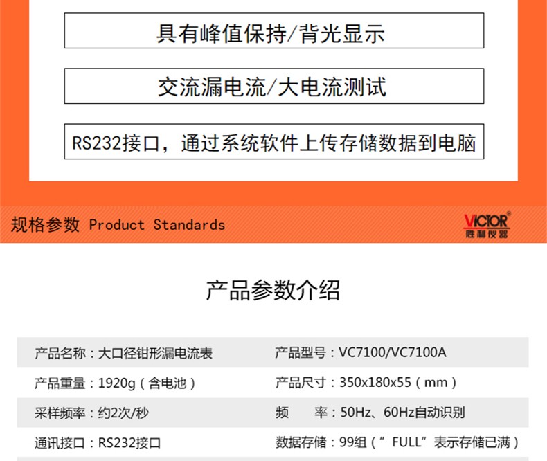 胜利仪器(VICTOR) 大口径毫安级钳形漏电流表 VC7100