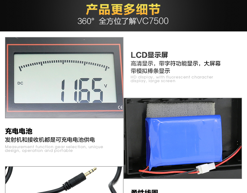 胜利仪器(VICTOR)数字测振仪 测震仪 分体式 尖头 振动测试仪 VC63A