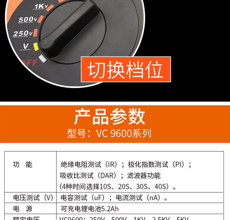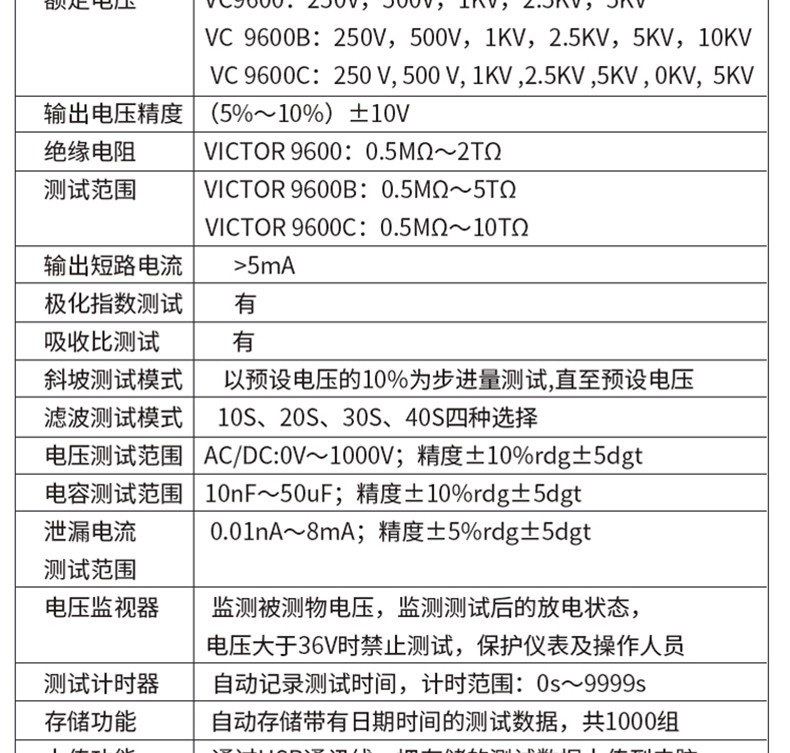 胜利仪器(VICTOR) 高压绝缘电阻测试仪 VC9600B