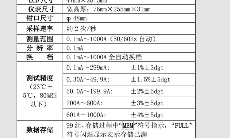 UNI-T优利德 1000A真有效值数字钳形表 UT208B 32cm*15cm*7cm