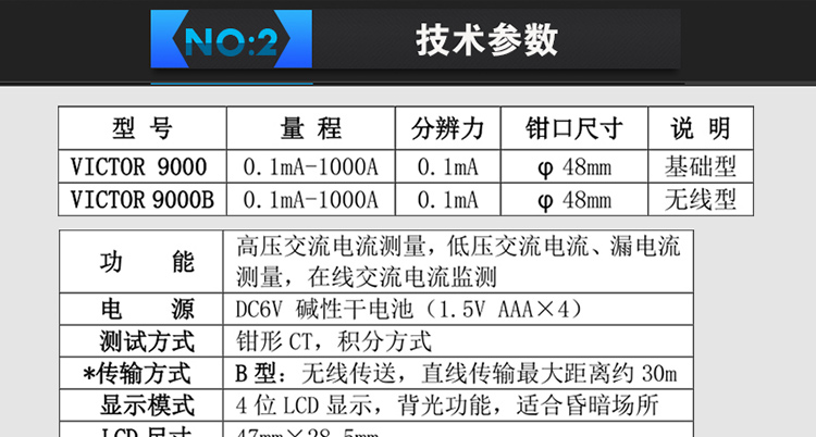 胜利仪器(VICTOR) VC9000B 无线高压线路钳形电流表