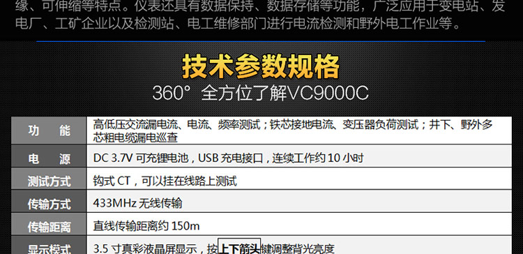 胜利仪器(VICTOR) VC9000C 无线高压线路钳形电流表