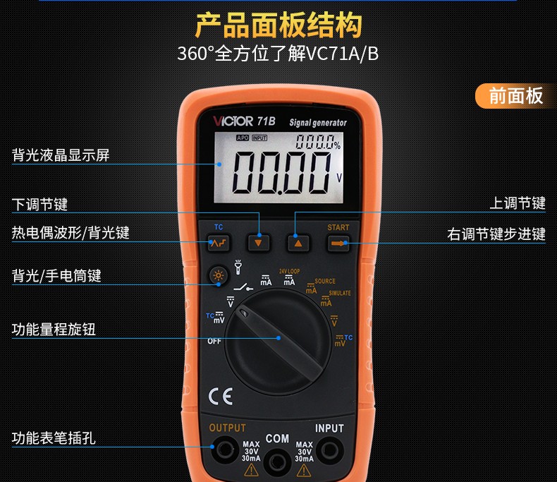 胜利仪器(VICTOR) 过程仪表校验仪 电压电流信号发生器 模拟变送器 VC14+【温度校验仪】