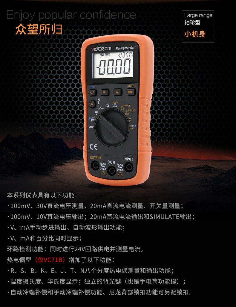 胜利仪器(VICTOR) 过程仪表校验仪 电压电流信号发生器 模拟变送器 VC11+【V/mA校验仪】