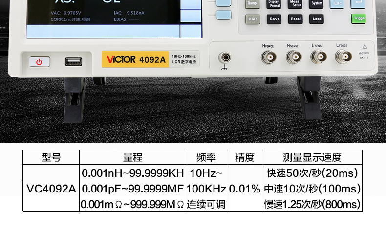 胜利仪器(VICTOR) VC4092A LCR数字电桥测试仪元器件电容电感电阻测量仪