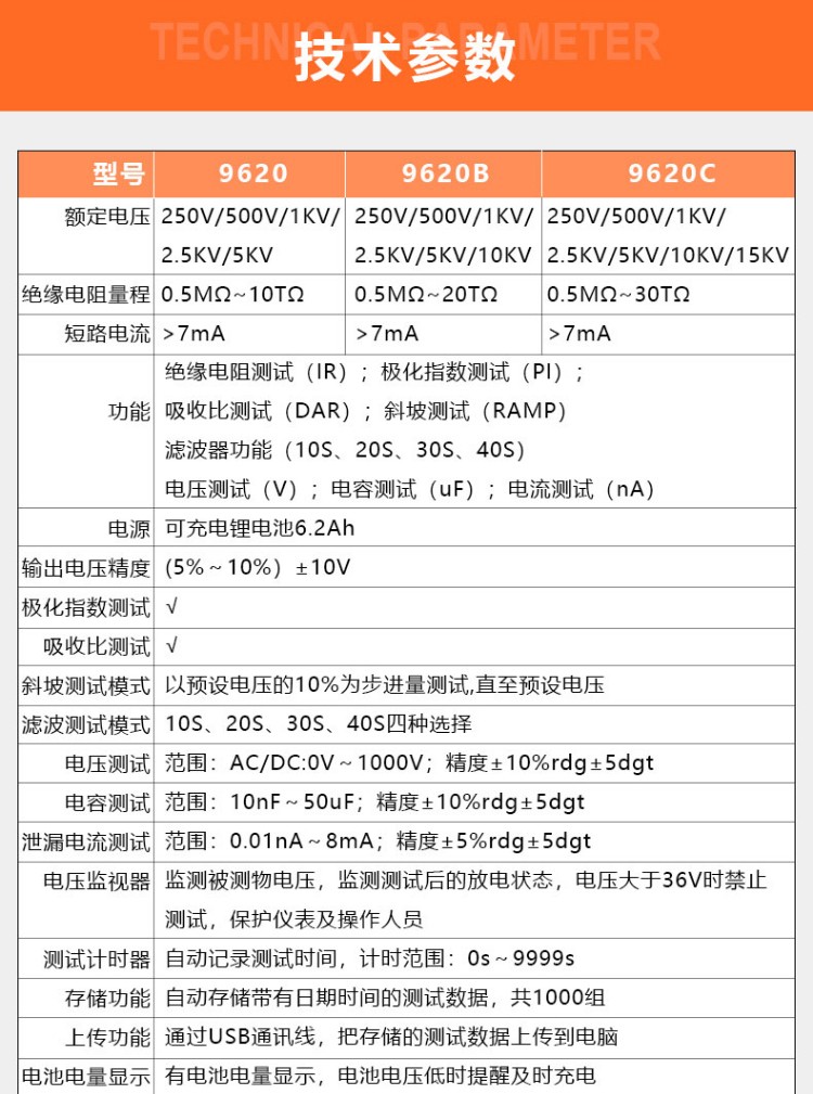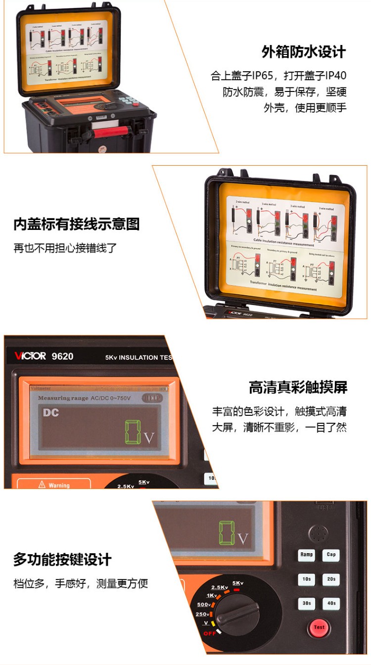 胜利仪器(VICTOR) 高性能高压绝缘电阻测试仪 USB数据储存 VC9620B【10KV·20TΩ】