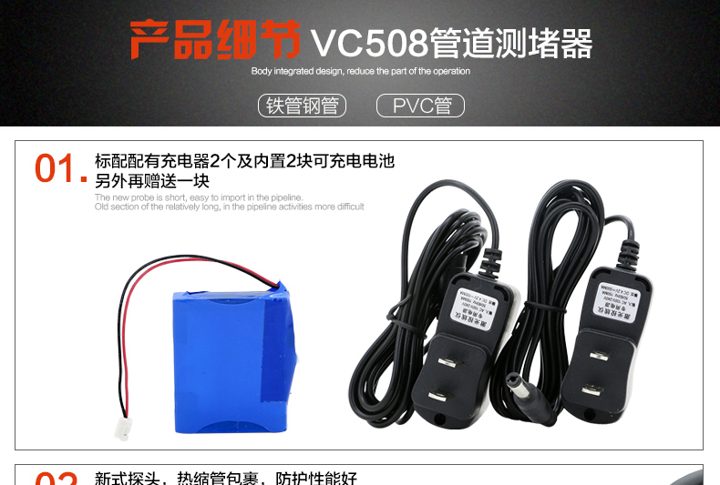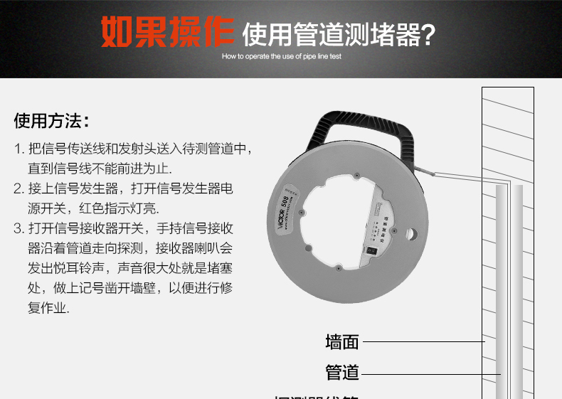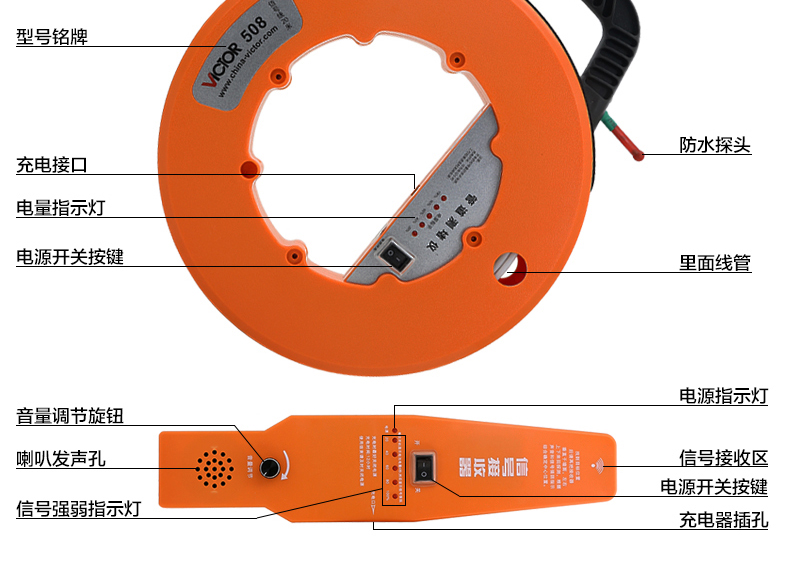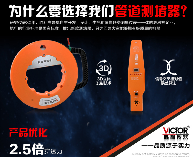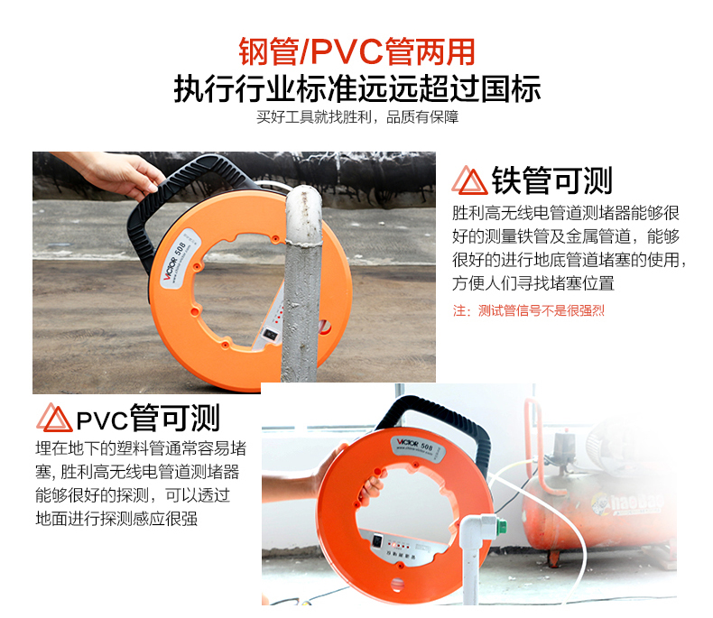 胜利仪器VICTOR管道测堵仪VC508A/漏水测试仪VC528塑管PVC管穿线管堵塞 无线电测堵器 管道漏水测试仪 VC528 (深度2米)