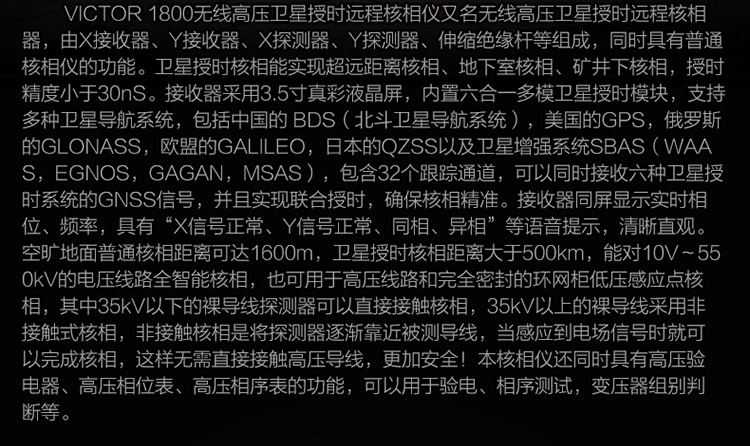 胜利仪器(VICTOR) VC1800 无线高压卫星授时远程核相仪 可搜索卫星、带语音