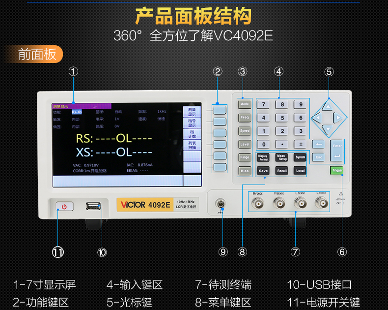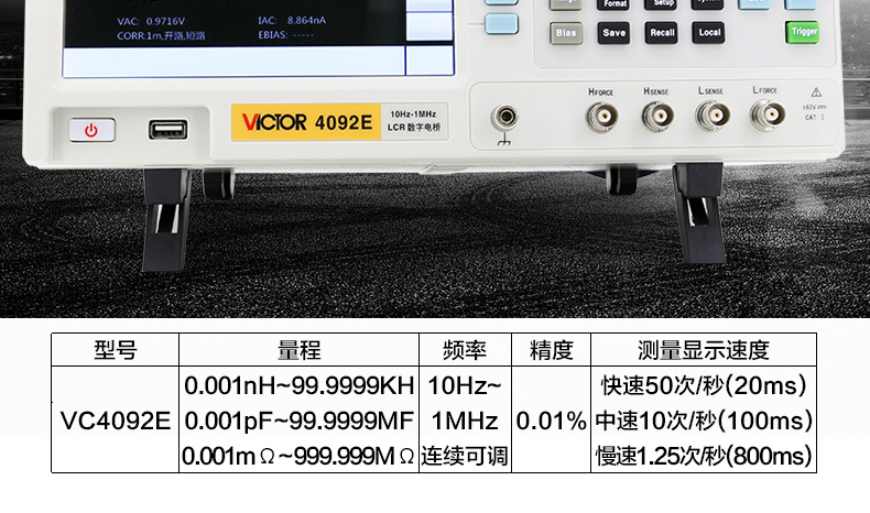 胜利仪器(VICTOR) VC4092E LCR数字电桥测试仪元器件电容电感电阻测量仪