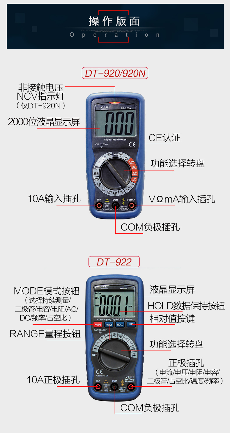 华盛昌高精度数字万用表真有效值电压电流自动量程DT-922 DT-920