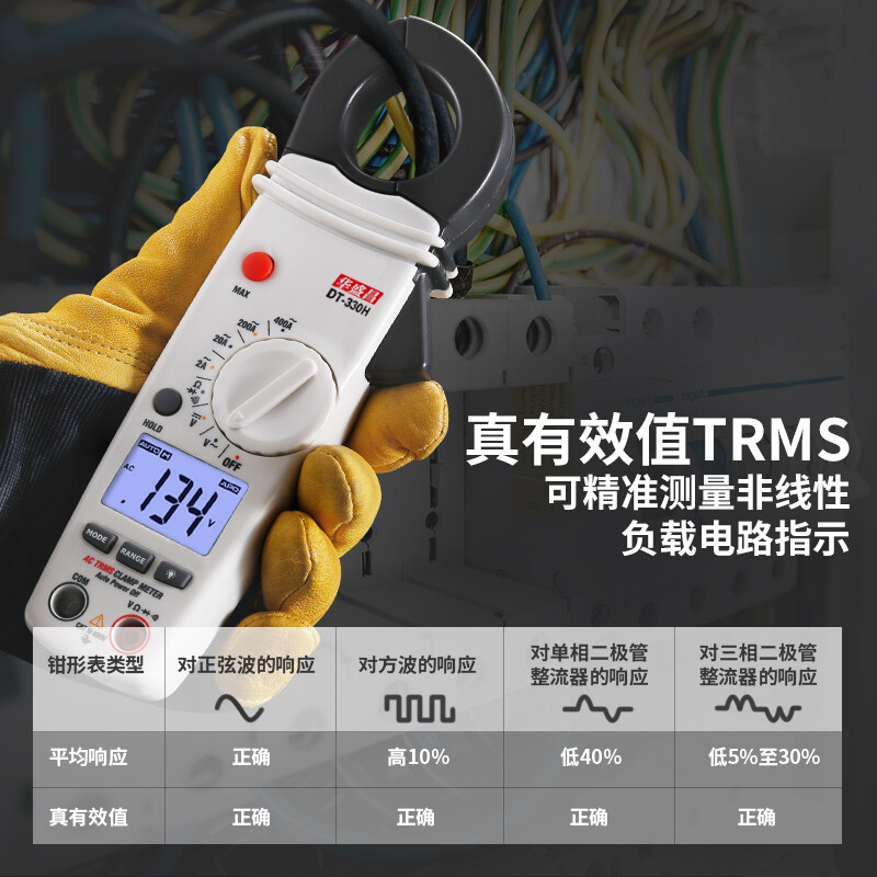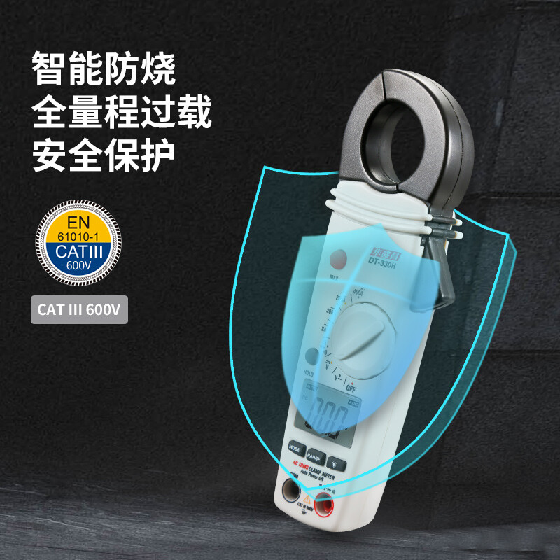 华盛昌(CEM)DT-330H数字钳形表 高精度真有效值电流表 全自动数显交流电流表