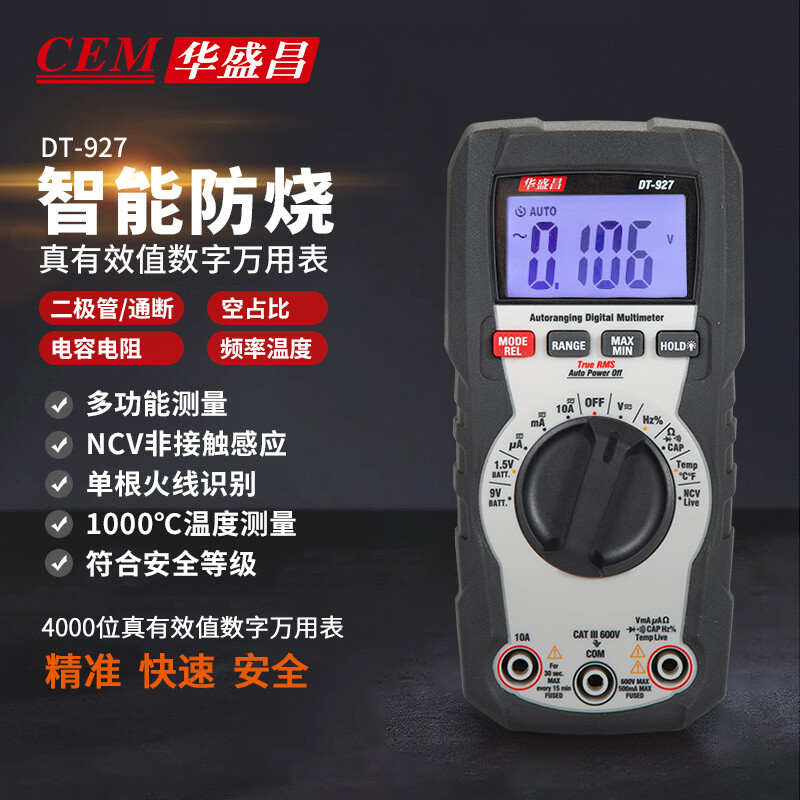 华盛昌(CEM)DT-927 数字万用表 真有效值防烧背光 高精度电工表 电流表万能表