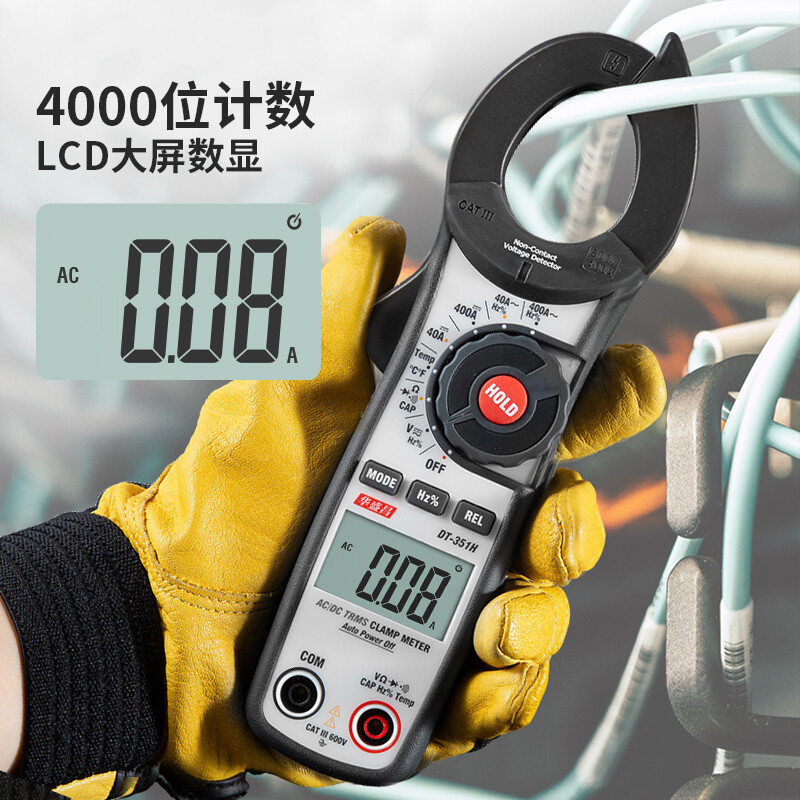 华盛昌(CEM)DT-351H数字钳形表 高精度真有效值电流表 全自动数显交直流电流表