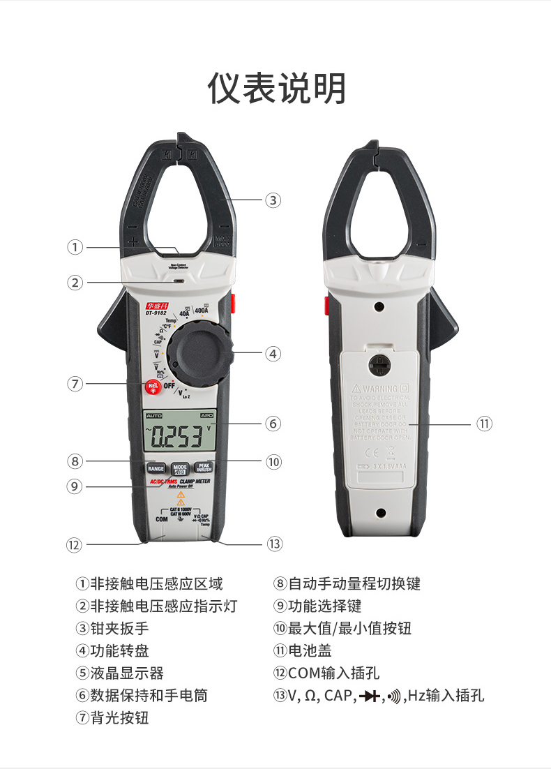 华盛昌(CEM)DT-9180H/9181H/9182高精度数字钳形表工业多能表电流电压表真有效值 DT-9180H
