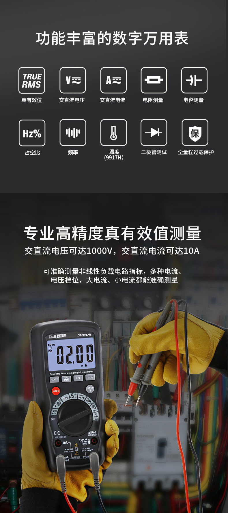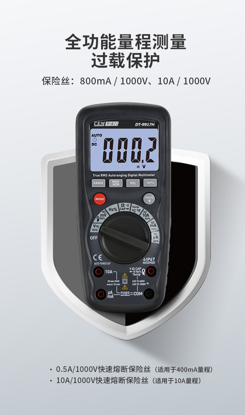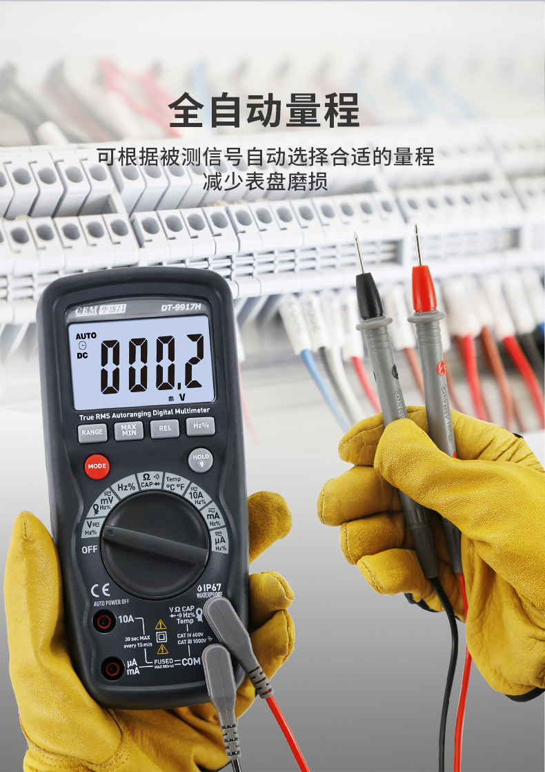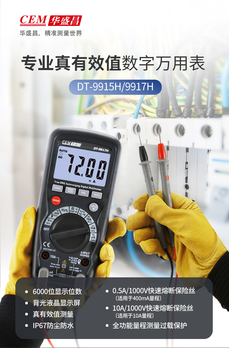 CEM华盛昌DT-9915H/9917H高精度数字万用表自动量程保护电工万能表真有效值防烧背光电流表 DT-9917H