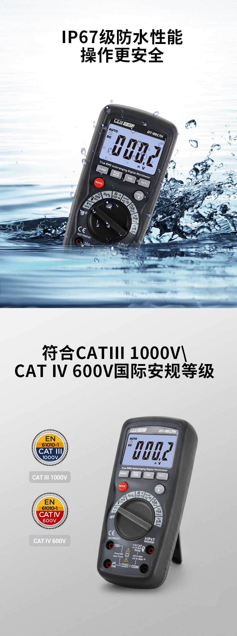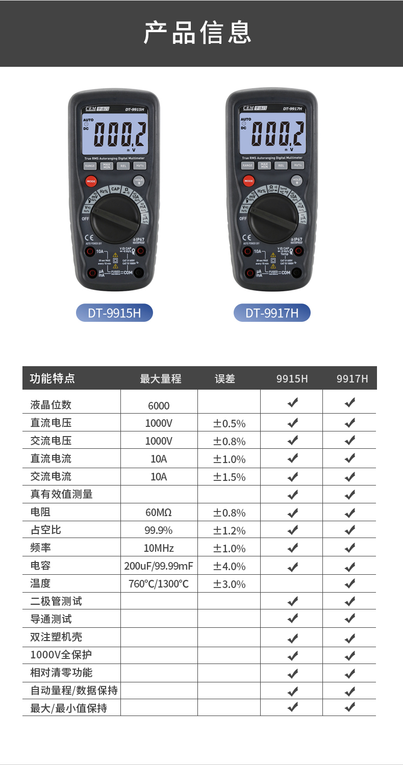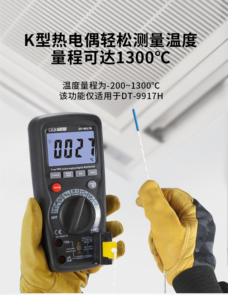 CEM华盛昌DT-9915H/9917H高精度数字万用表自动量程保护电工万能表真有效值防烧背光电流表 DT-9917H