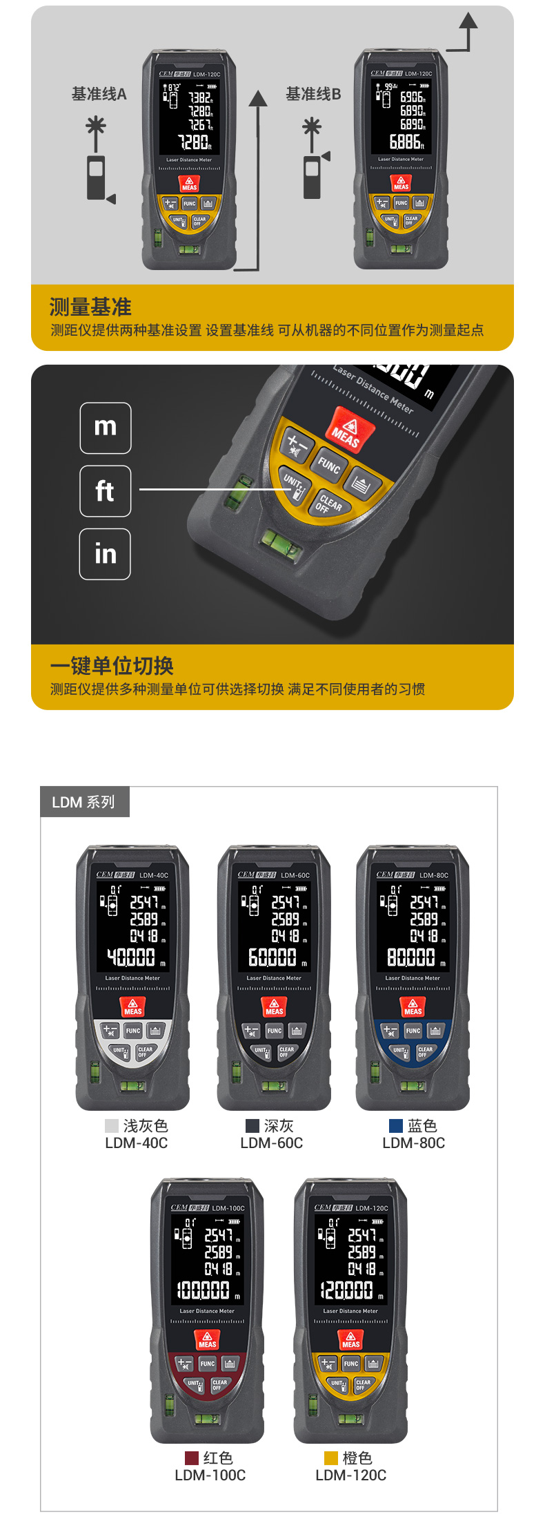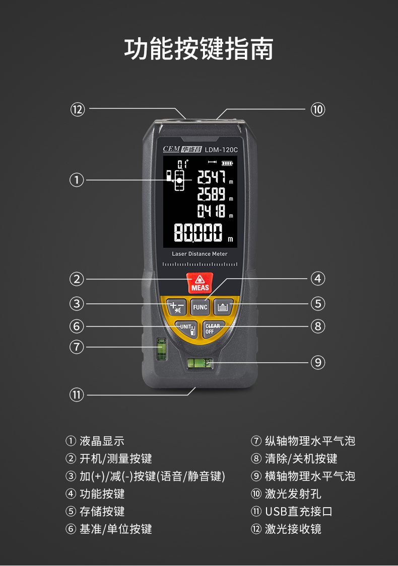 华盛昌 高精度激光测距仪红外线电子尺量房仪远距离强光测量仪 LDM-100C (100米)