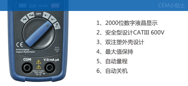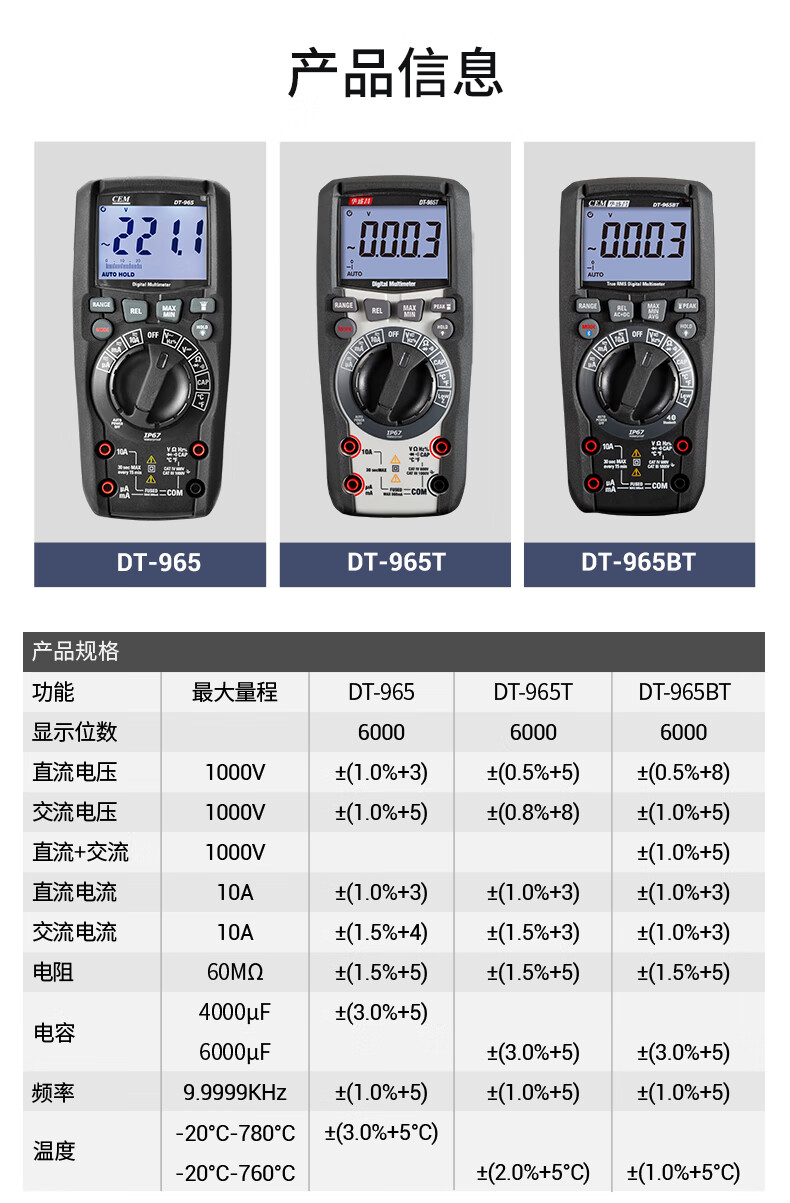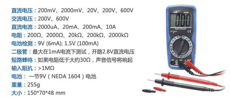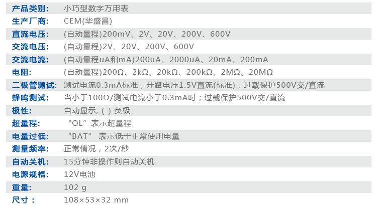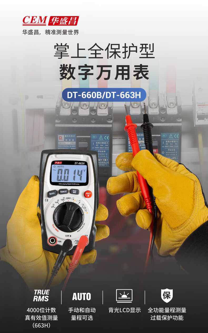 华盛昌CEM多功能数字万用表 高精度自动量程电压电流表电阻测试仪真有效值欧姆表 DT-950B(自动+电容+温度)