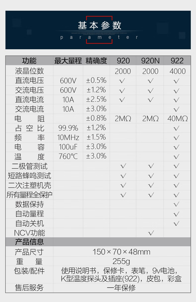 UNI-T优利德 1000A真有效值数字钳形表 UT208B 32cm*15cm*7cm