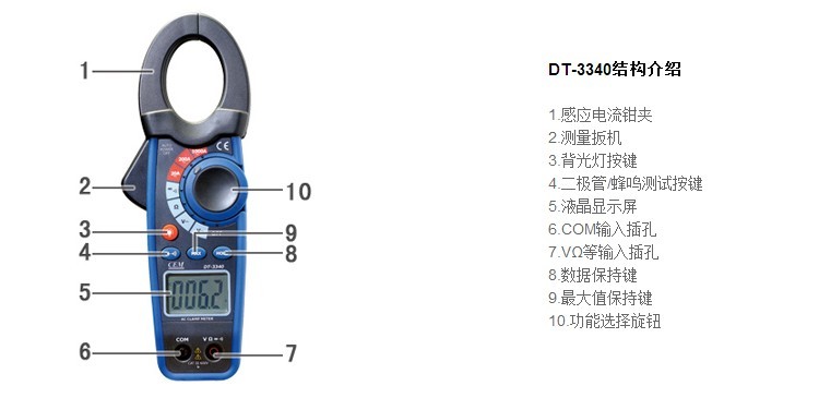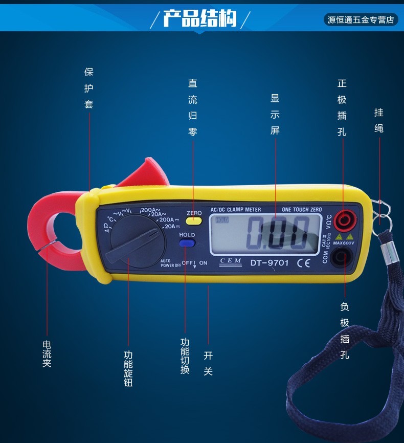 CEM华盛昌数字钳形表高精度电流表多功能数显万用表交直流真有效值电压电阻测试仪 DT-3340原厂标配