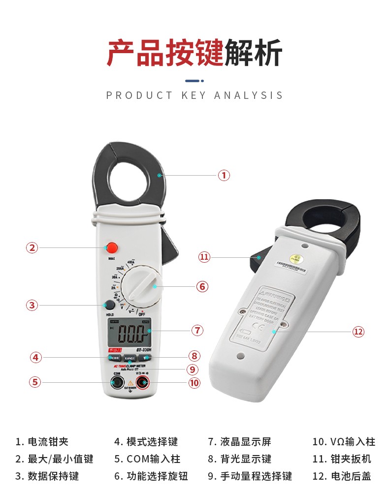 CEM华盛昌数字钳形表高精度电流表多功能数显万用表交直流真有效值电压电阻测试仪 DT-363原厂标配