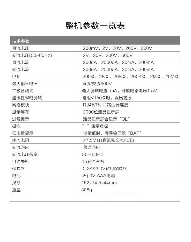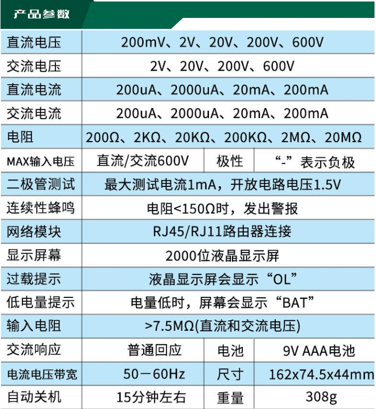 UNI-T优利德 1000A真有效值数字钳形表 UT208B 32cm*15cm*7cm
