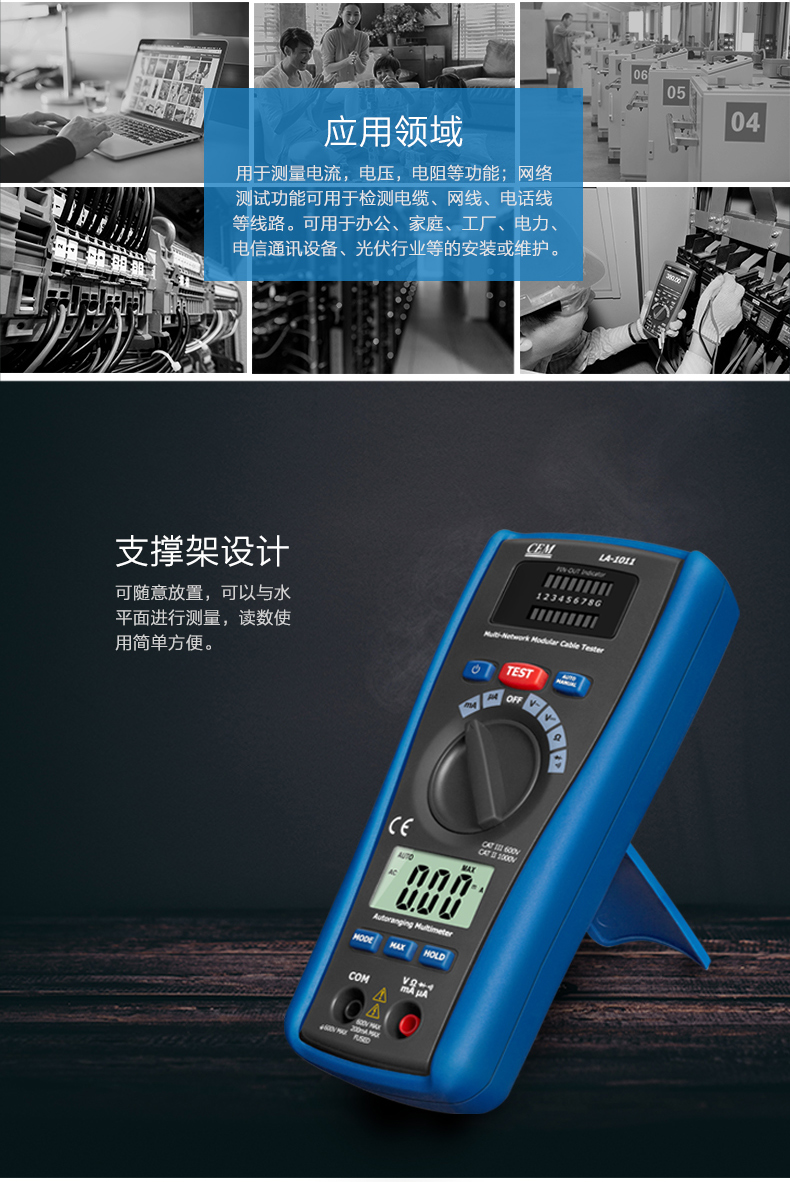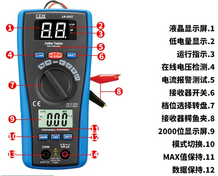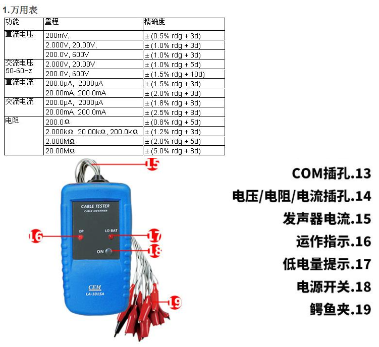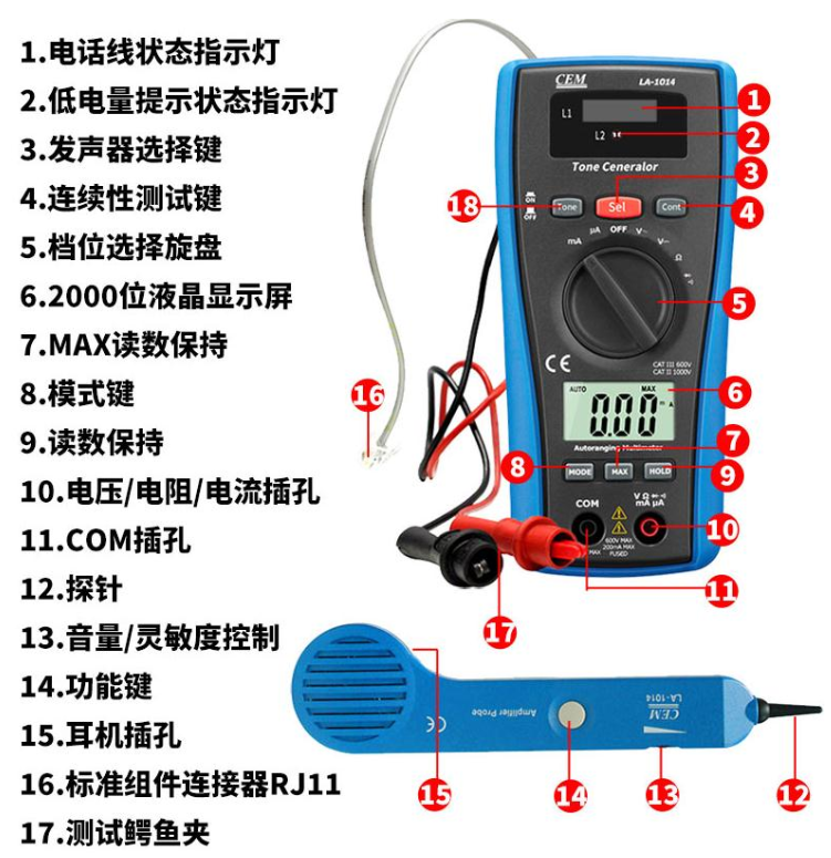 CEM华盛昌LA-1011网络测试仪寻线器测线器电话线测试仪LA1011 LA-1011万用表+网线测试功能