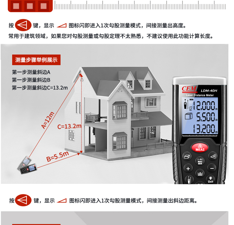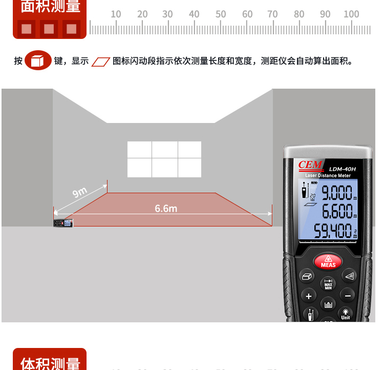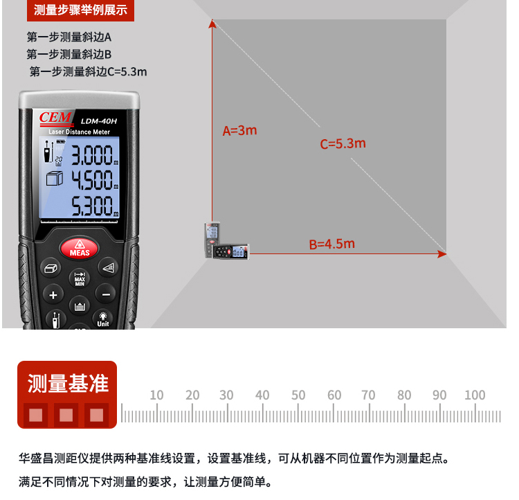 (CEM)华盛昌40米/50米/60米/100米/110强光版高精度激光测距仪室内装修量房尺电子卷尺 LDM-110H 测量0.05-110米
