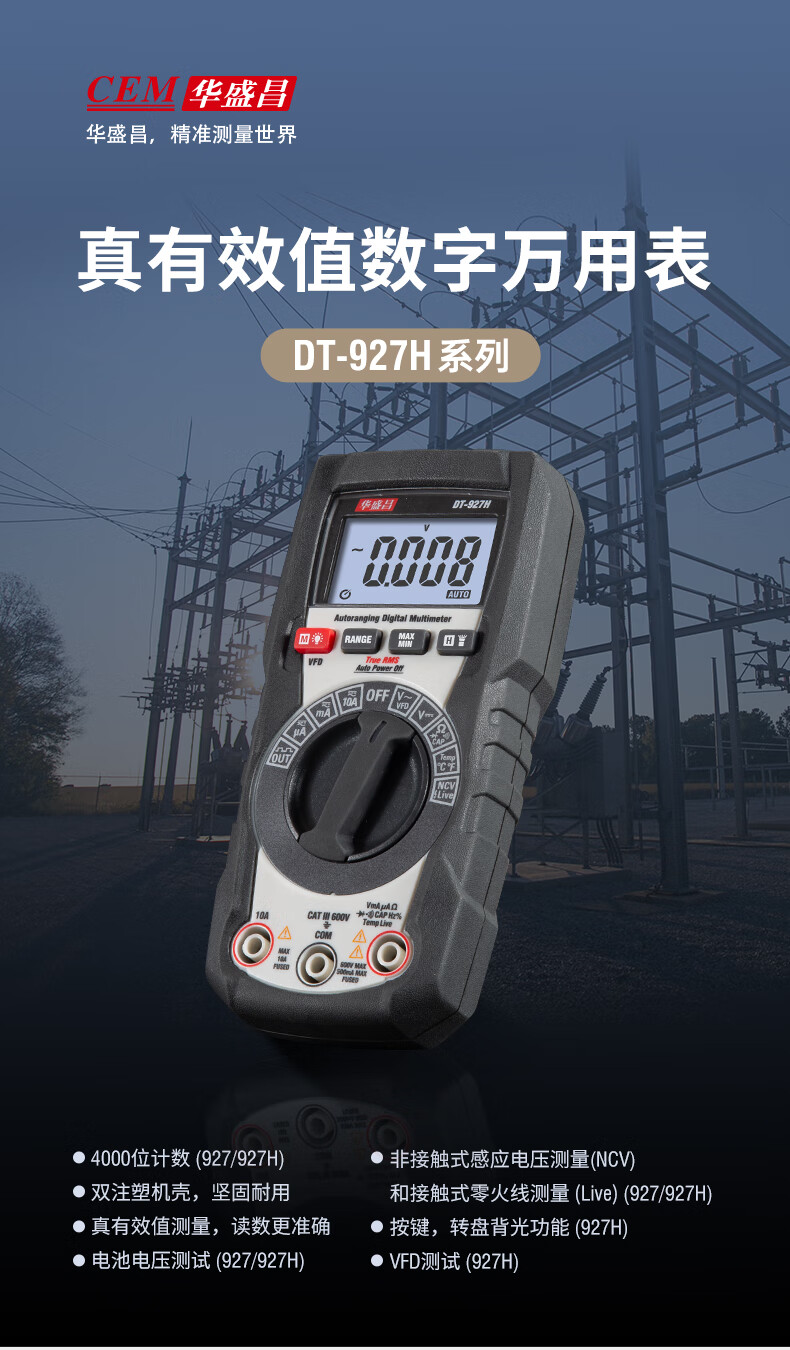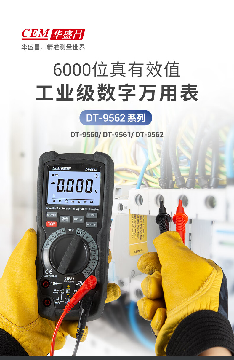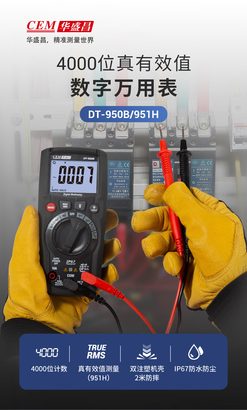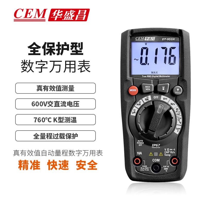 华盛昌CEM多功能数字万用表 高精度自动量程电压电流表电阻测试仪真有效值欧姆表 DT-951H(自动+真有效值+温度)