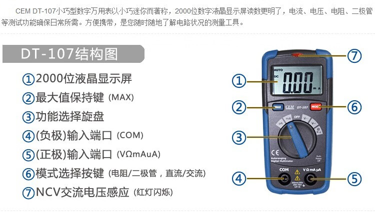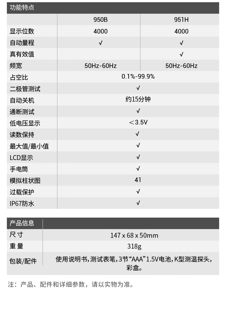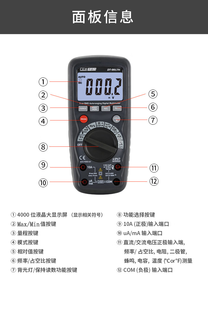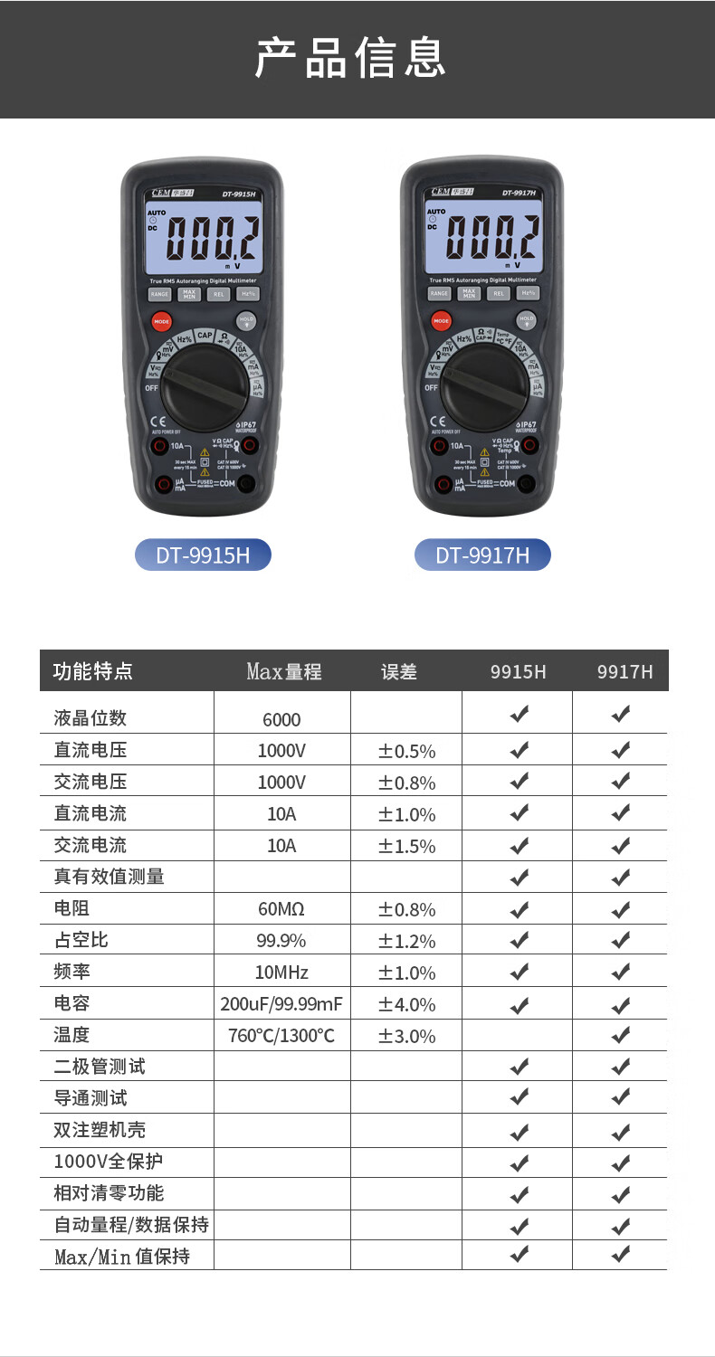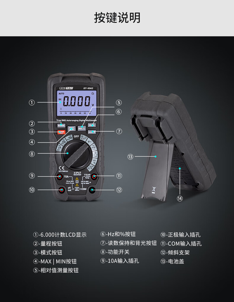 华盛昌CEM多功能数字万用表 高精度自动量程电压电流表电阻测试仪真有效值欧姆表 DT-951H(自动+真有效值+温度)