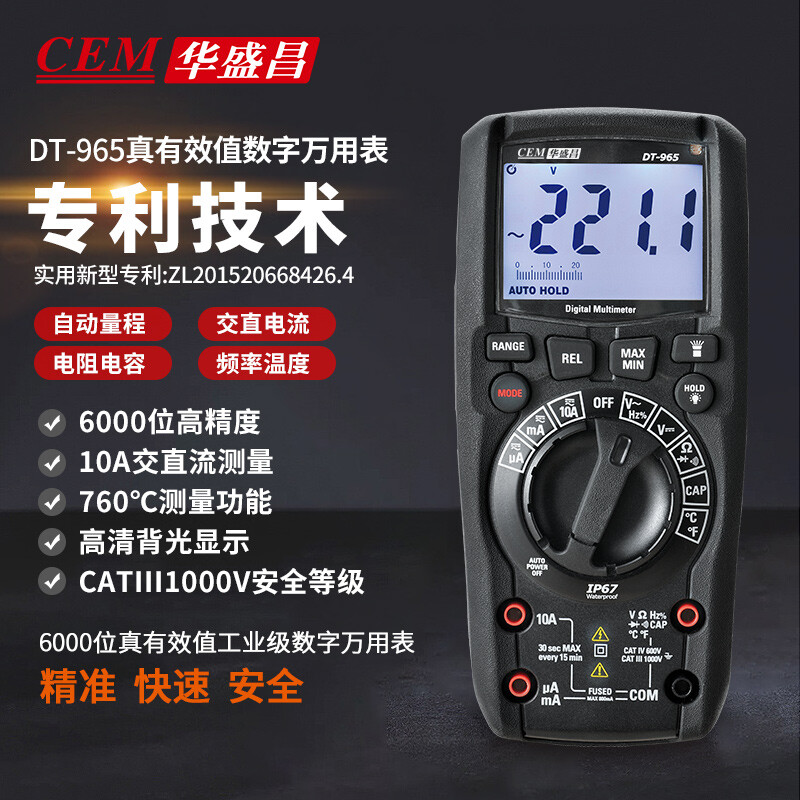 华盛昌(CEM)DT-965 数字万用表 真有效值防烧背光 高精度电工表 电流表万能表