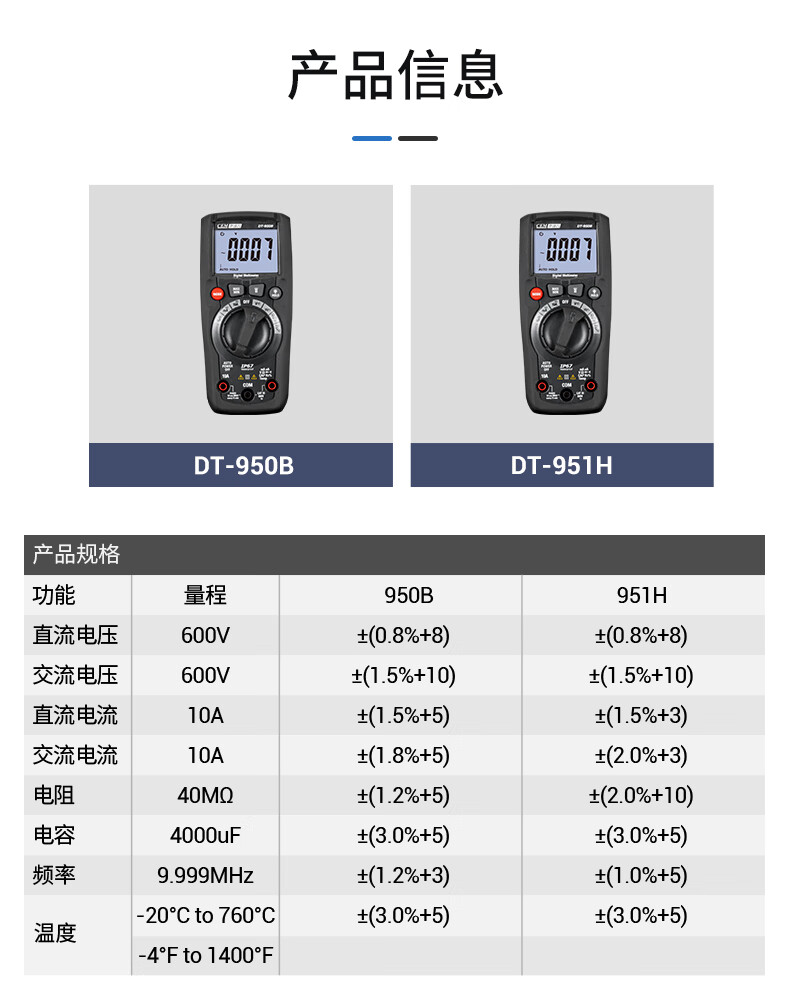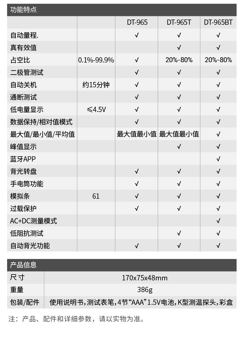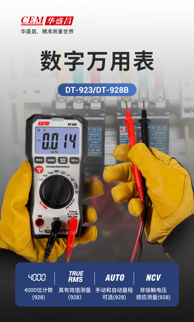 华盛昌CEM多功能数字万用表 高精度自动量程电压电流表电阻测试仪真有效值欧姆表 DT-965T(6000位+大电容+温度)