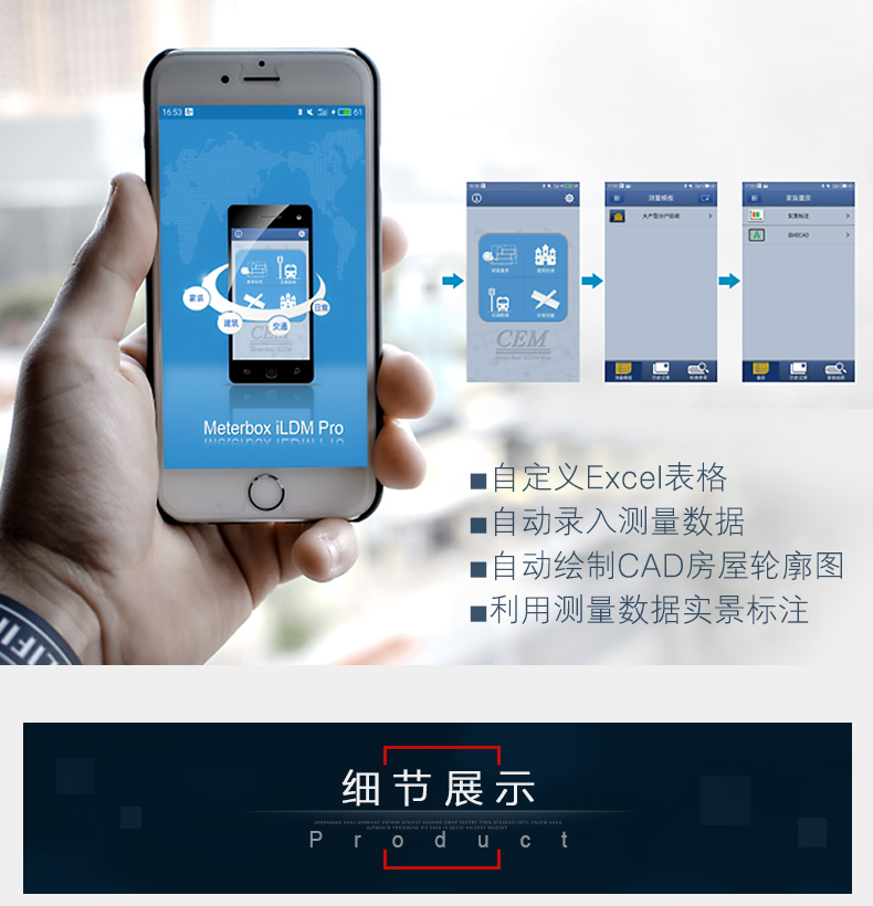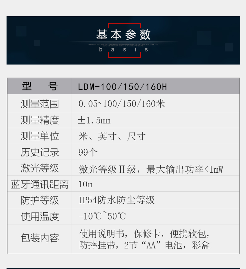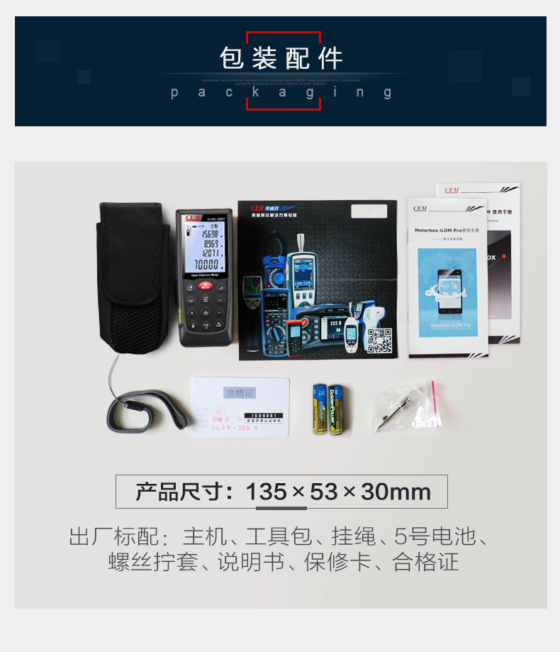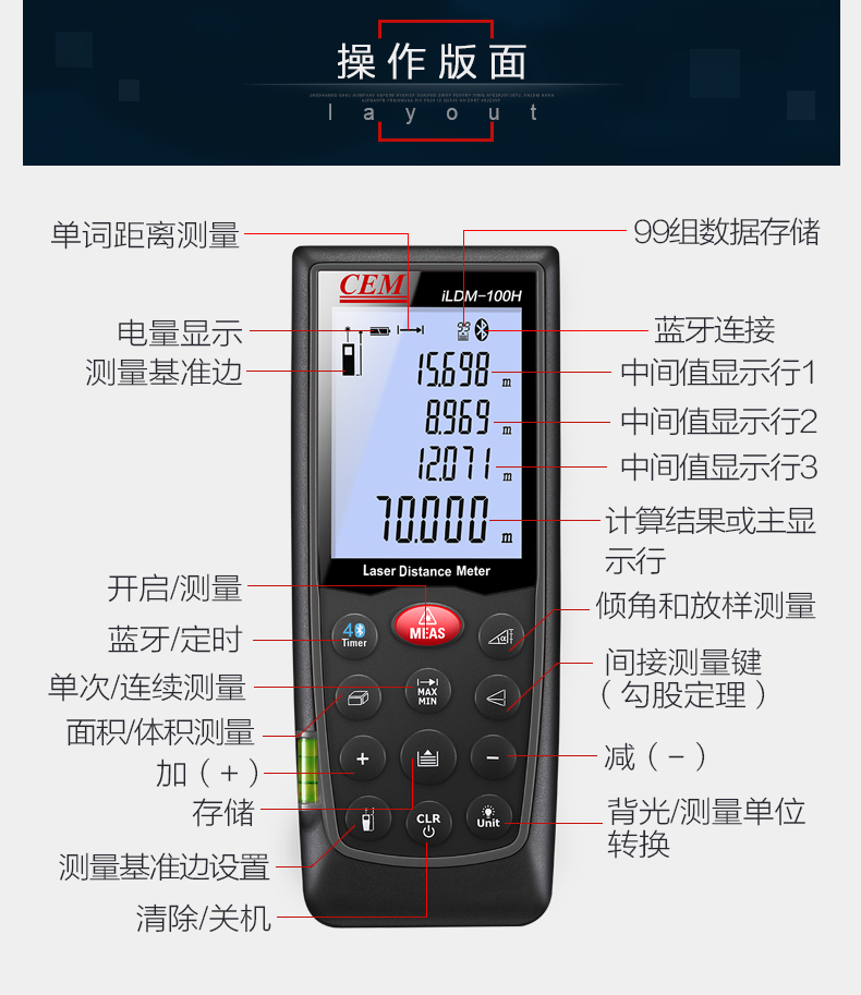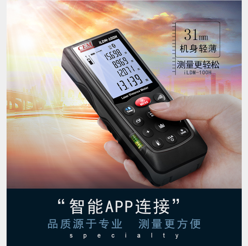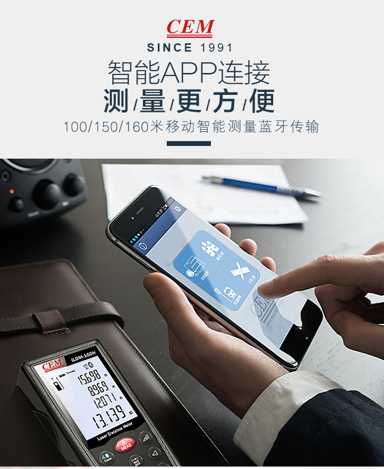 华盛昌(CEM)100米150米160米蓝牙红外激光测距仪户外电子尺高精度量房仪ILDM-100H 150米蓝牙传输