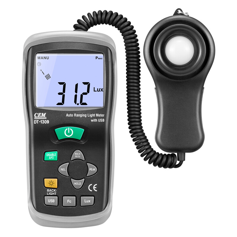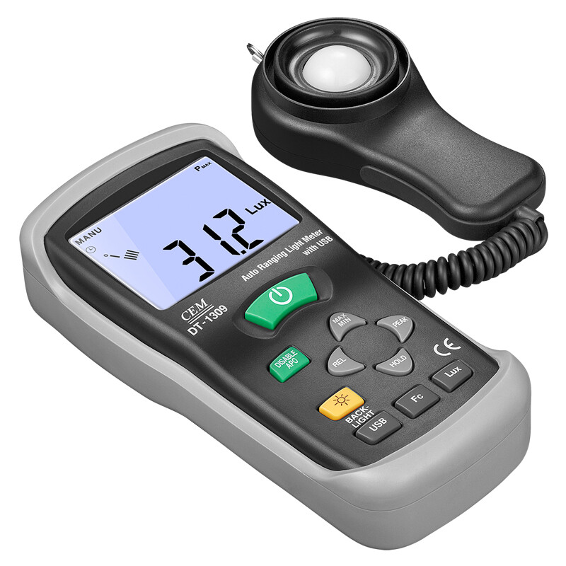 华盛昌(CEM)光照度计DT-1309专业高精度光度计 测光仪 亮度仪 自动量程高分辨率 PC软件