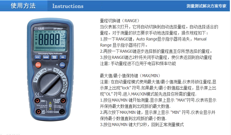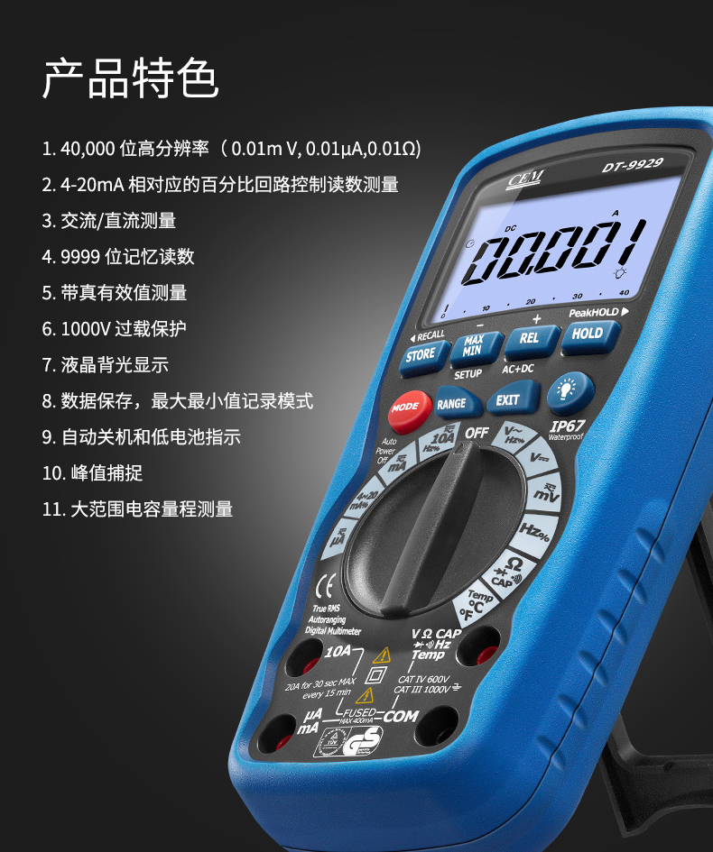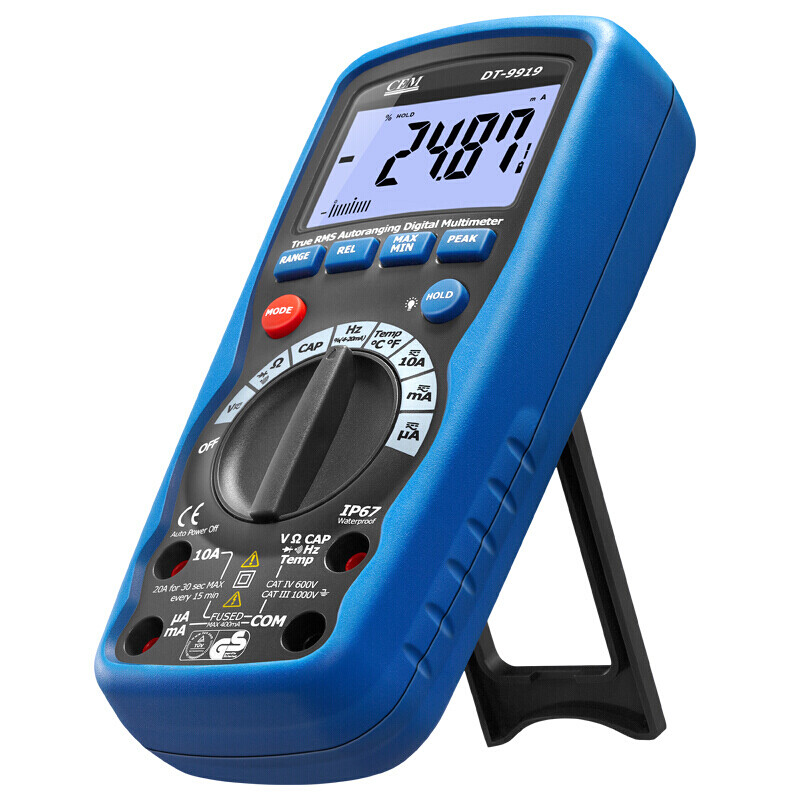 CEM华盛昌专业防水防尘自动量程防烧数字万用表 电压电流数显式真有效值电工维修防水型多用表 欧姆表 DT-9919