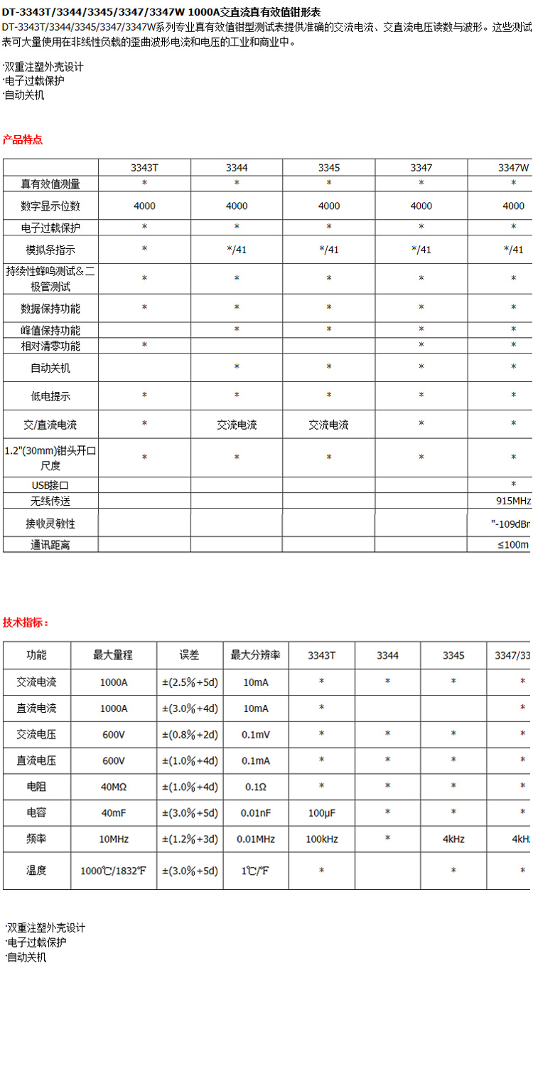 CEM华盛昌DT-3347高精度1000A交直流数字万用钳形表 DT-3347