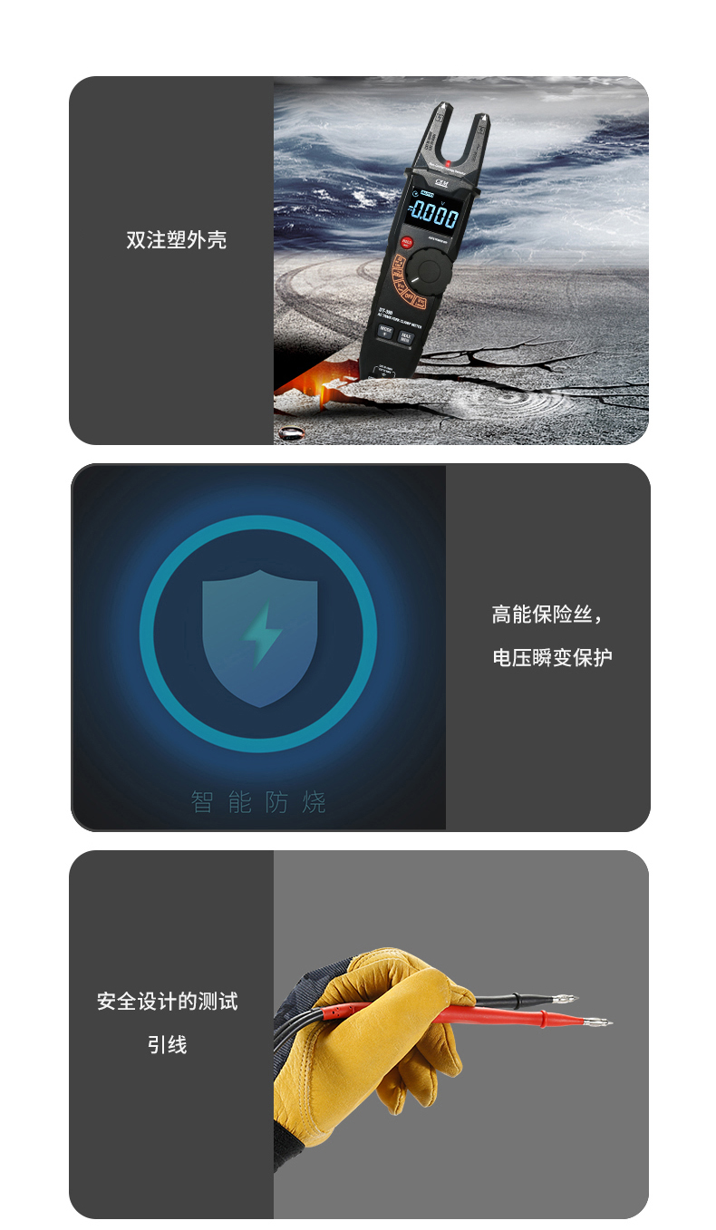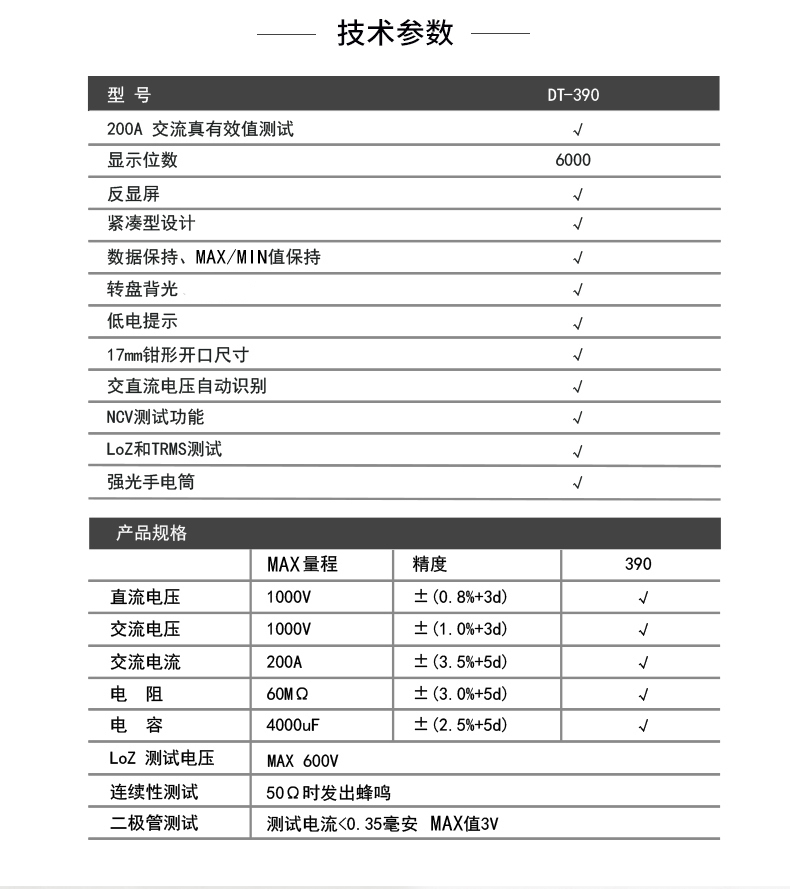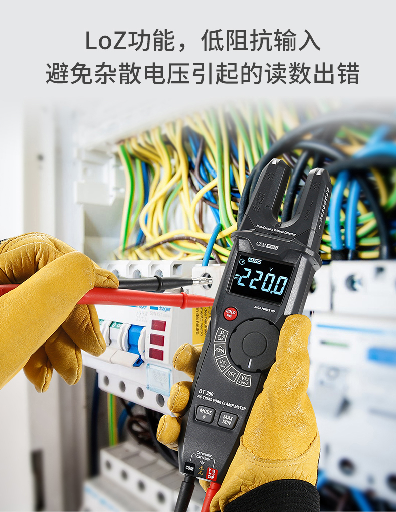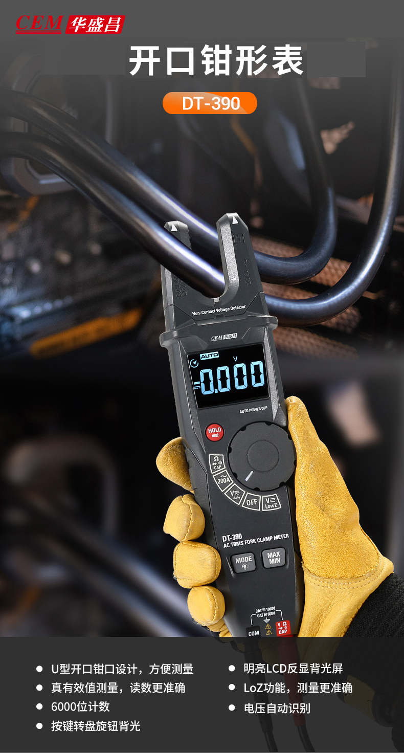CEM华盛昌工业真有效值电流电压开口钳形表电工多能表DT-390 DT-390