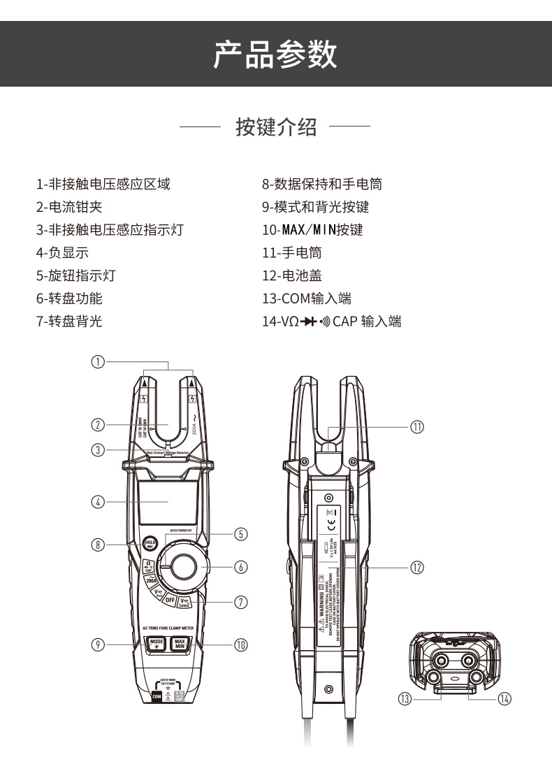UNI-T优利德 1000A真有效值数字钳形表 UT208B 32cm*15cm*7cm