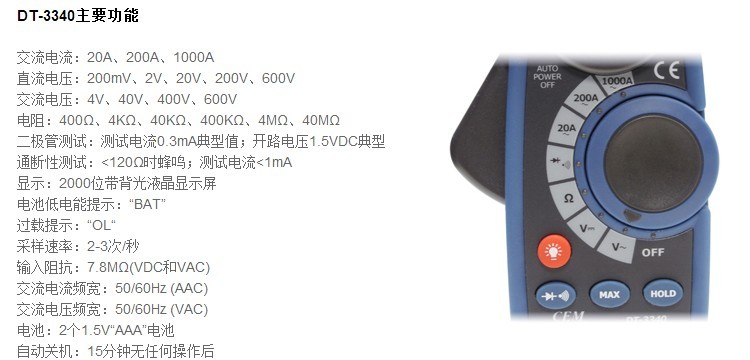 CEM华盛昌数字钳形表高精度电流表多功能数显万用表交直流真有效值电压电阻测试仪 DT-3351原厂标配