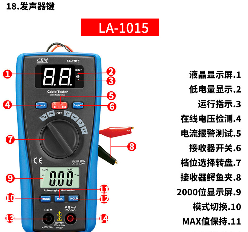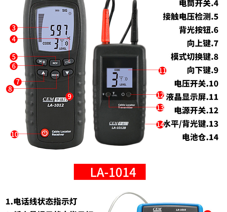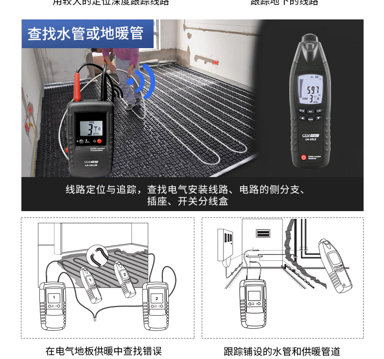 CEM华盛昌LA-1011/1012多功能电线电缆探测仪寻线器 短路探测器 LA-1012电缆线测试仪