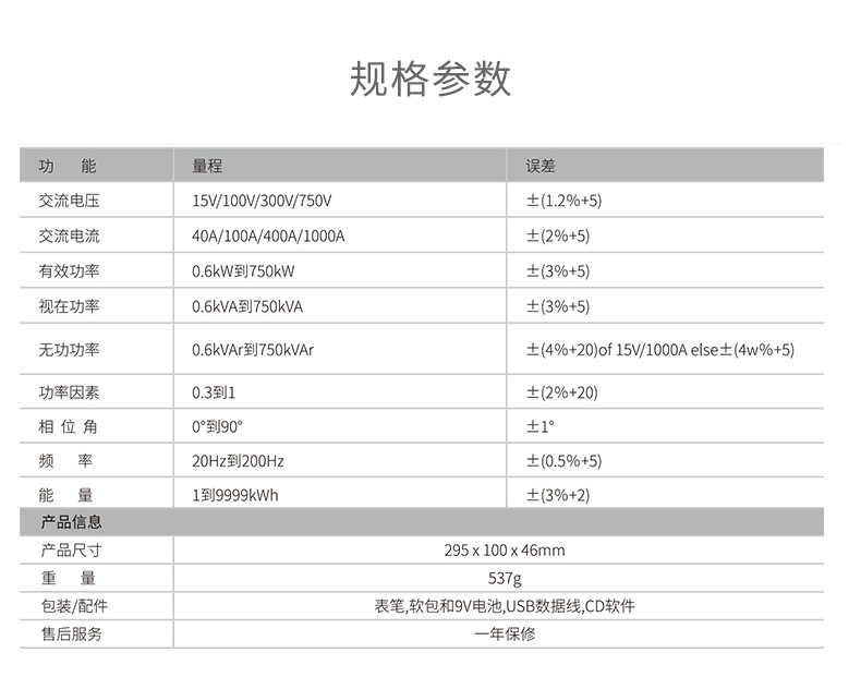 UNI-T优利德 1000A真有效值数字钳形表 UT208B 32cm*15cm*7cm
