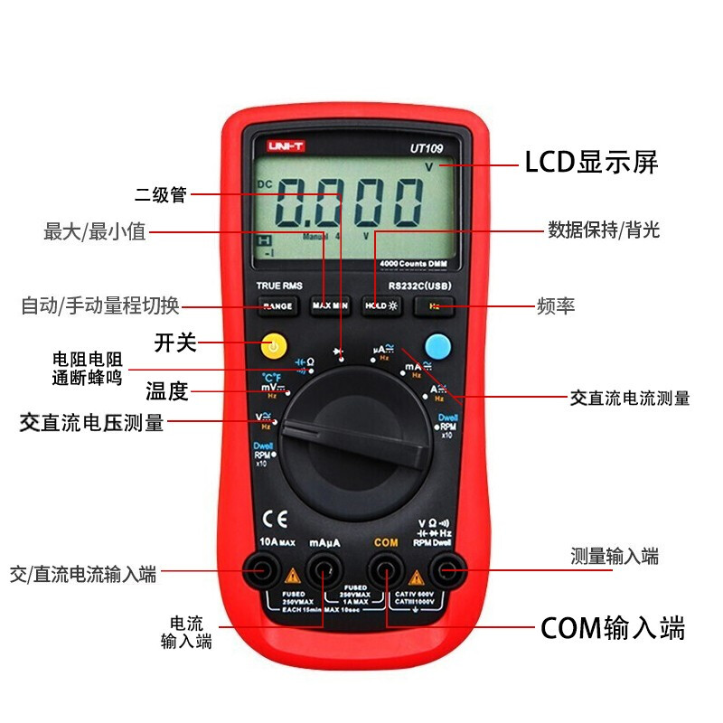 优利德(UNI-T)UT109 手持式汽车用万用表 多用表 数显汽车检测表/高精度多功能万用表