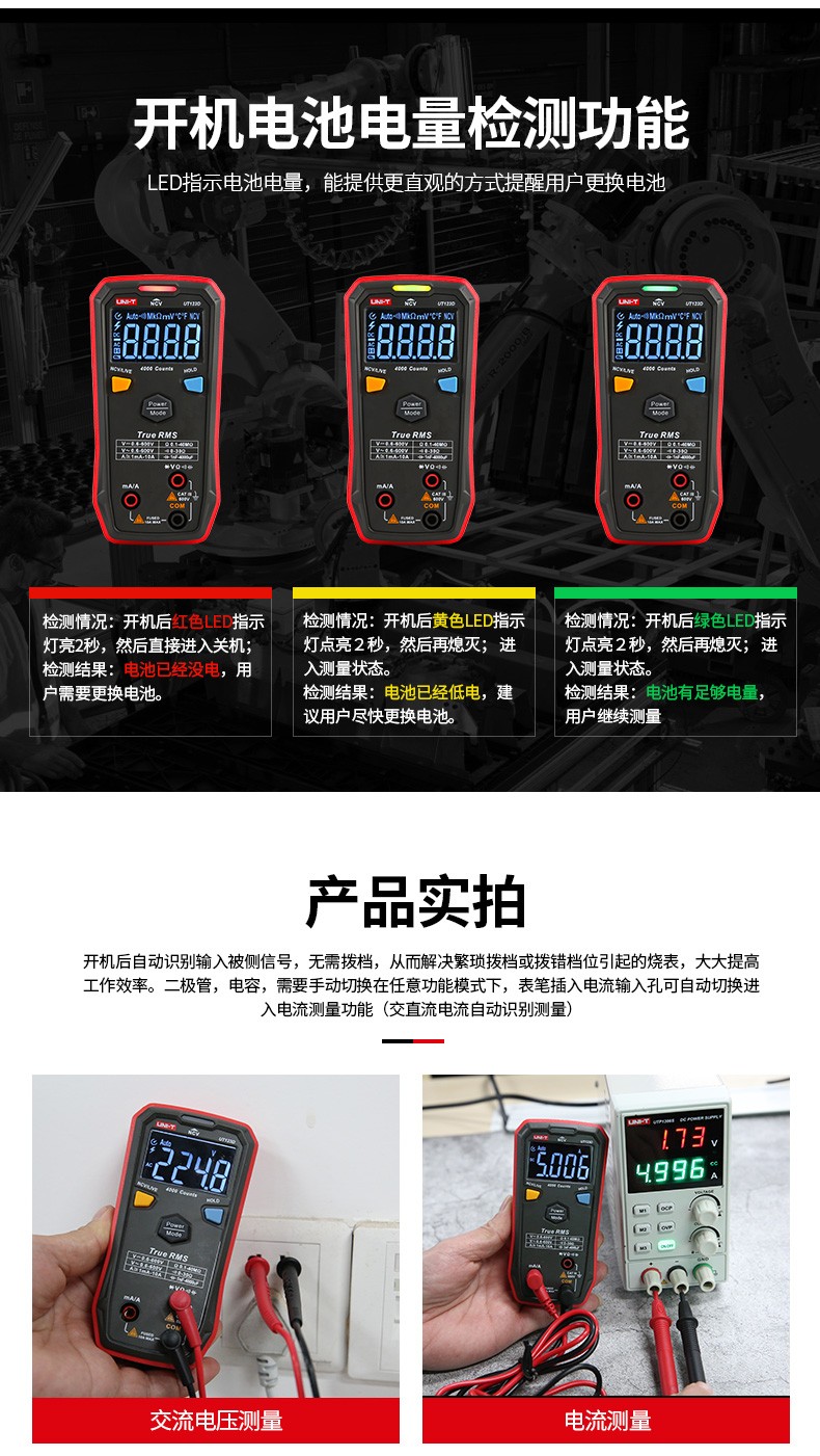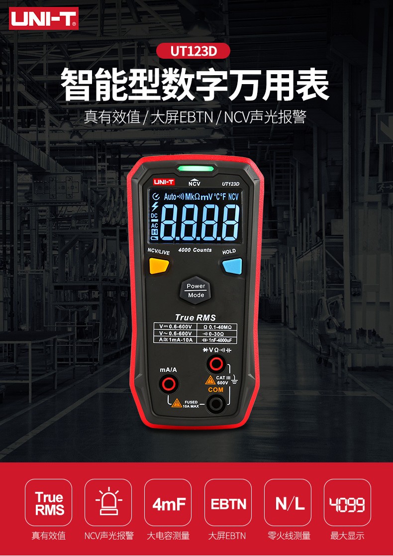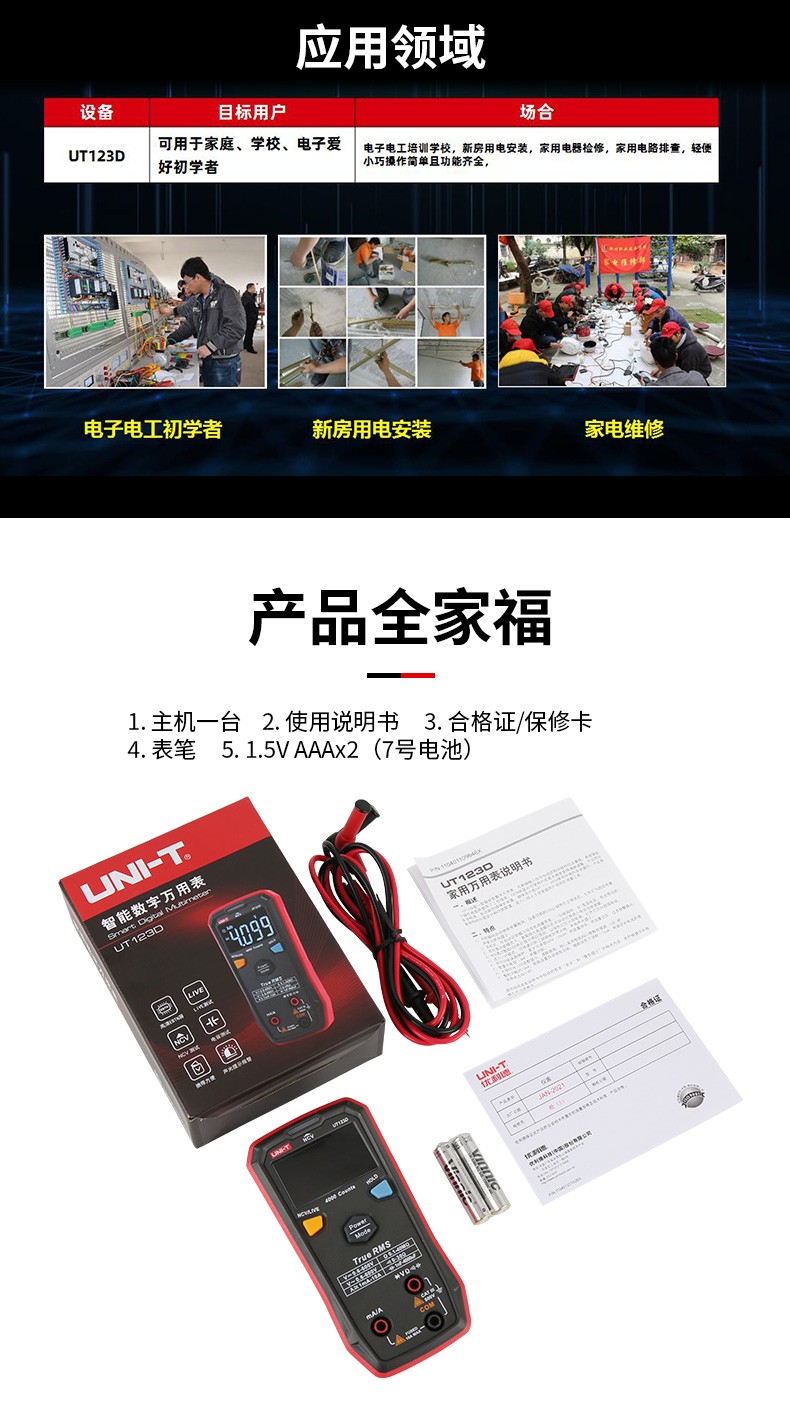 优利德UT123D智能型数字万用表高精度多功能数显式维修电工万能表真有效值智能防烧自动识别电压电流 UT123D(升级版)