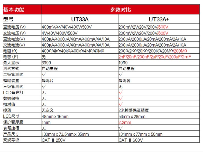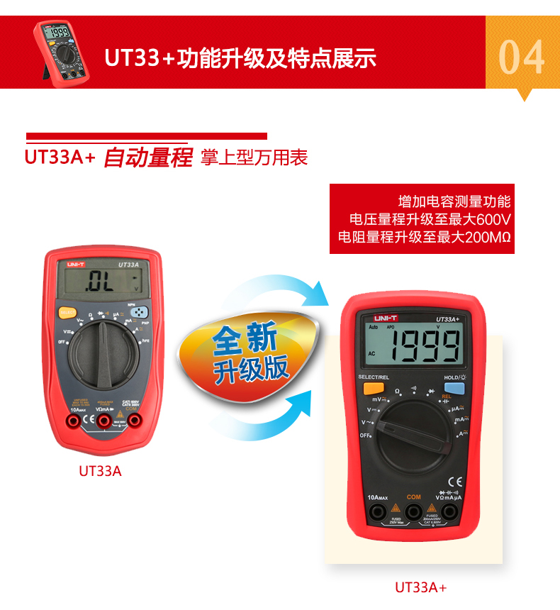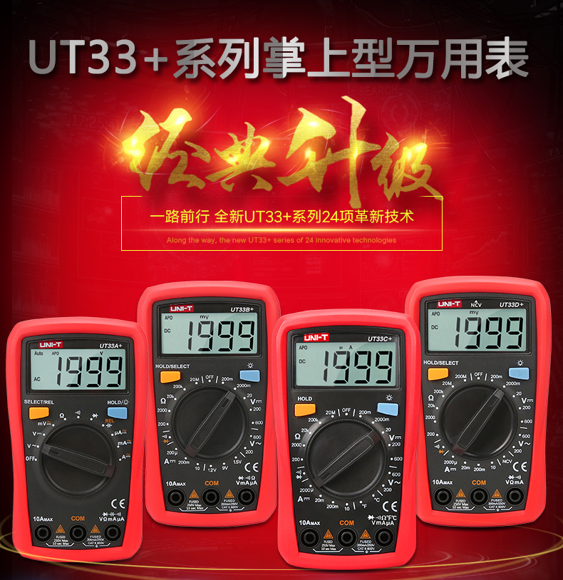 【官方直销】优利德UT33系列增强版自动防烧小型数显万用表自动量程背光万能表 UT33A+(自动量程 智能防烧)