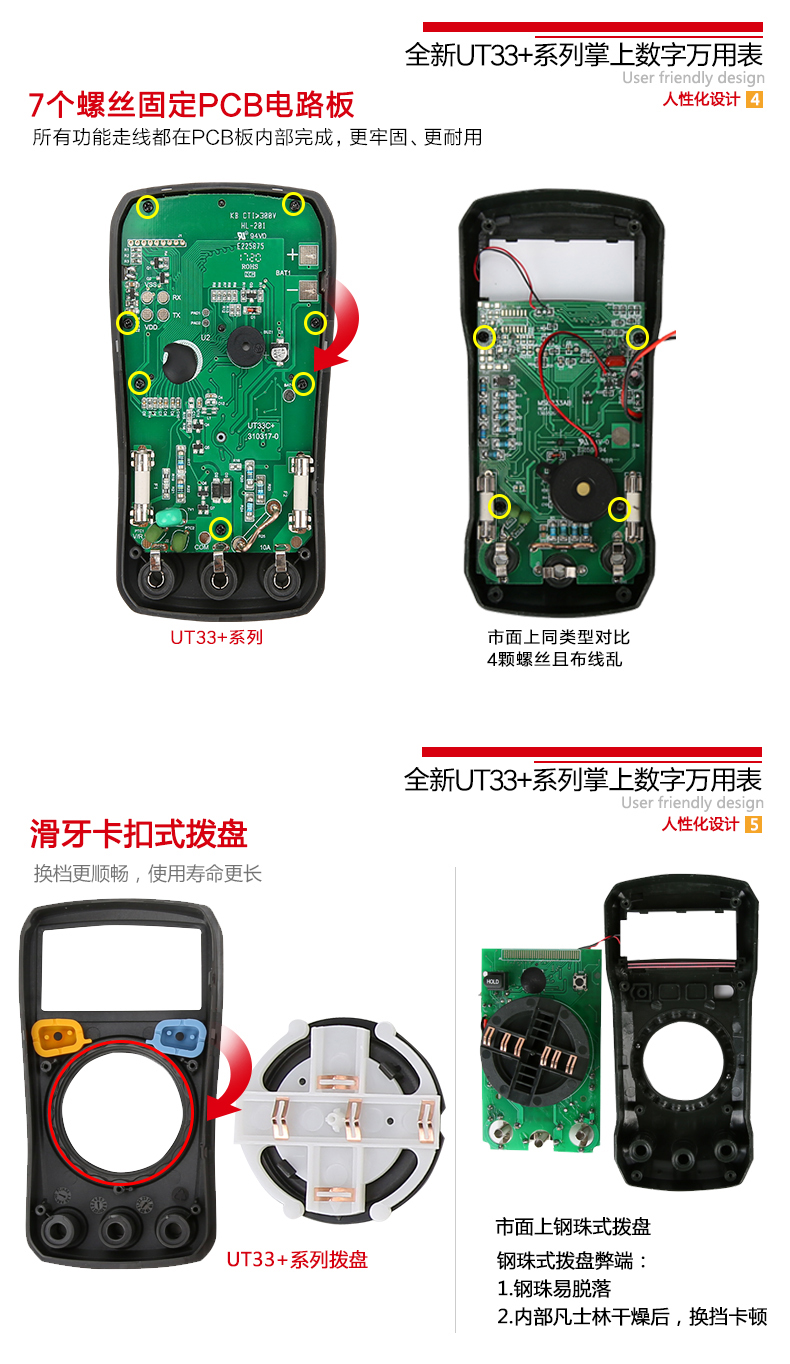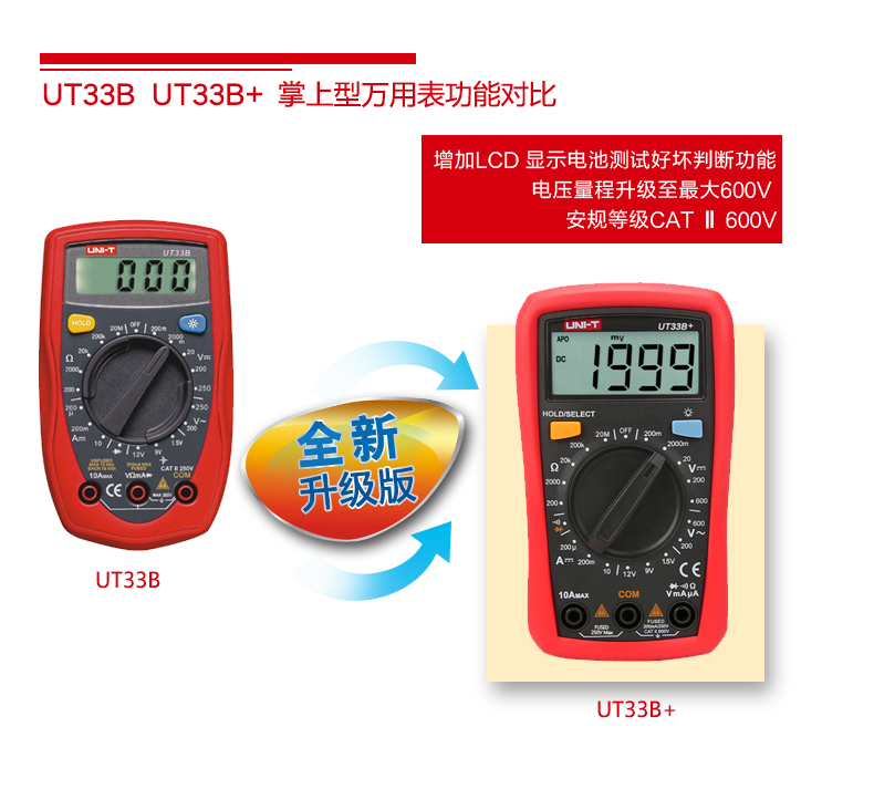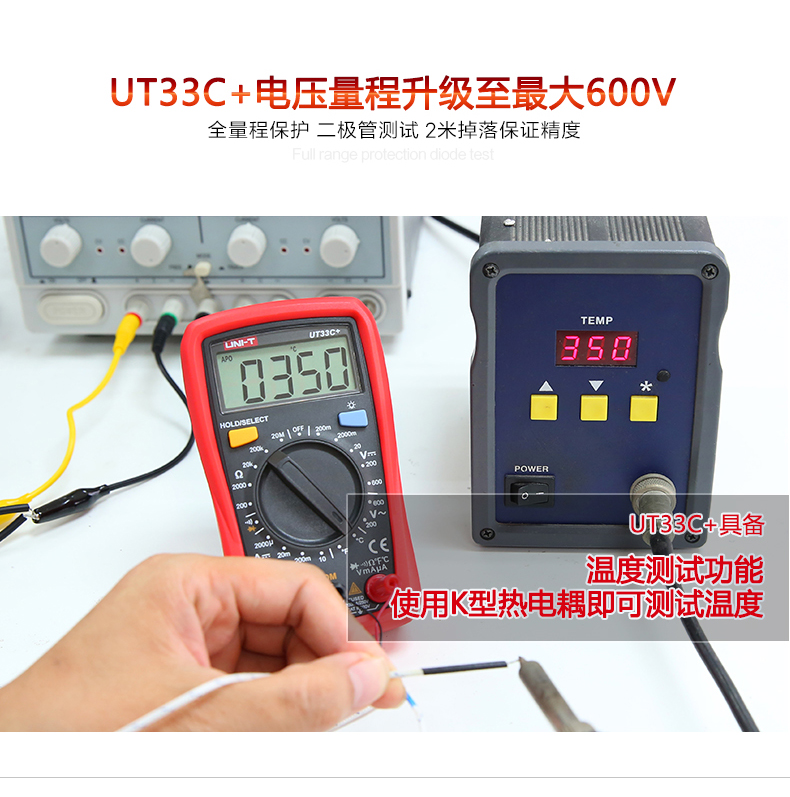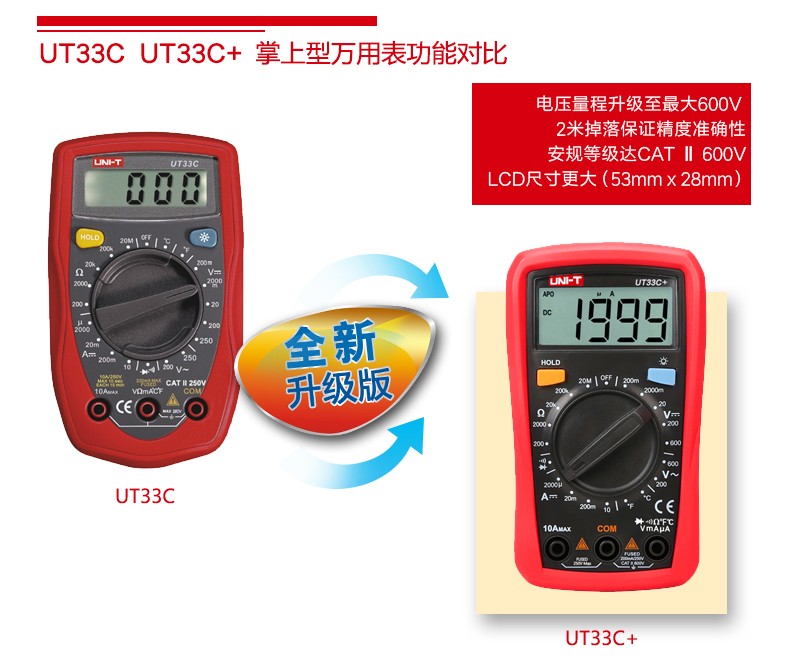 【官方直销】优利德UT33系列增强版自动防烧小型数显万用表自动量程背光万能表 UT33C+(智能防烧 温度 背光)