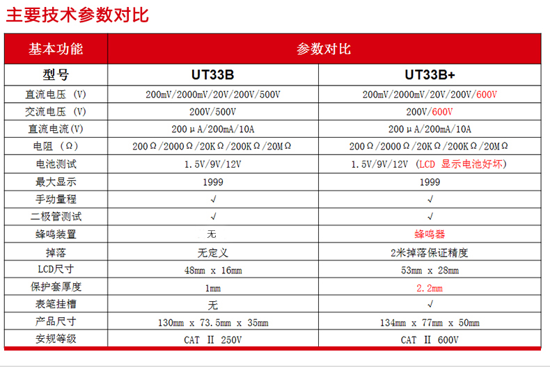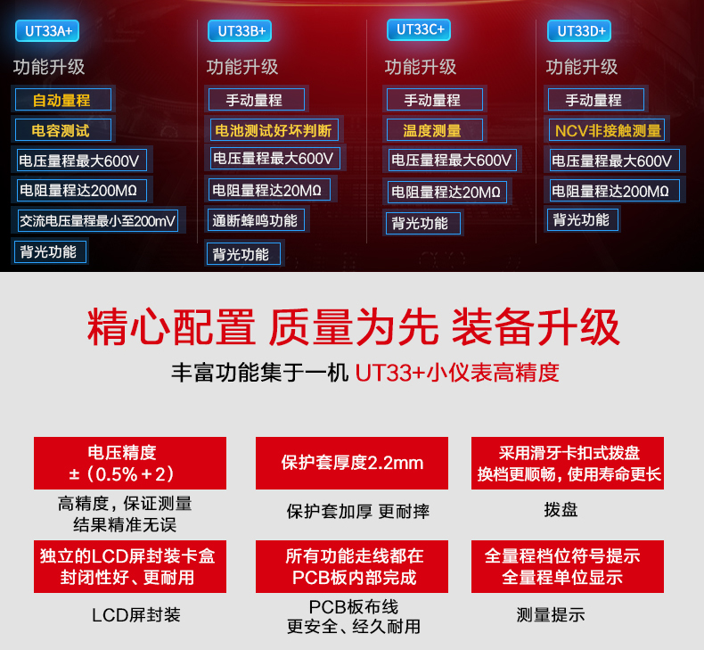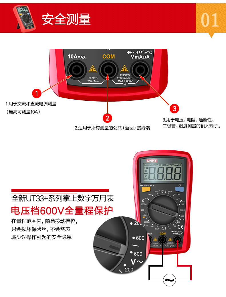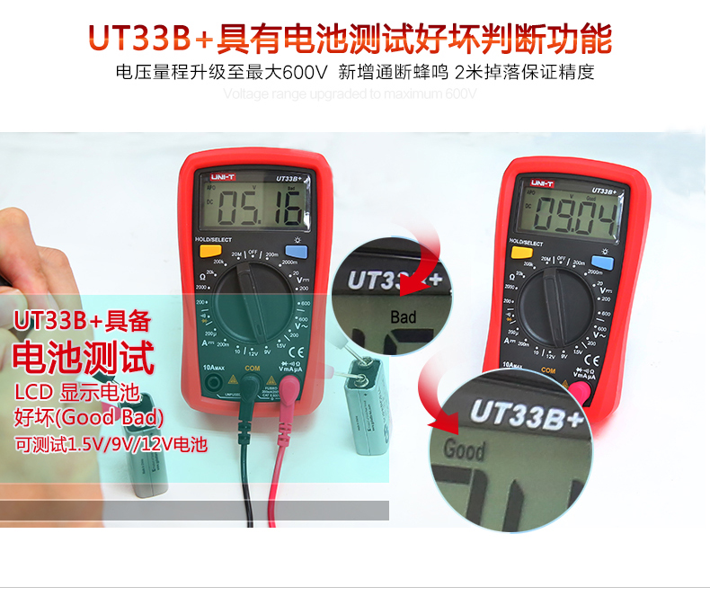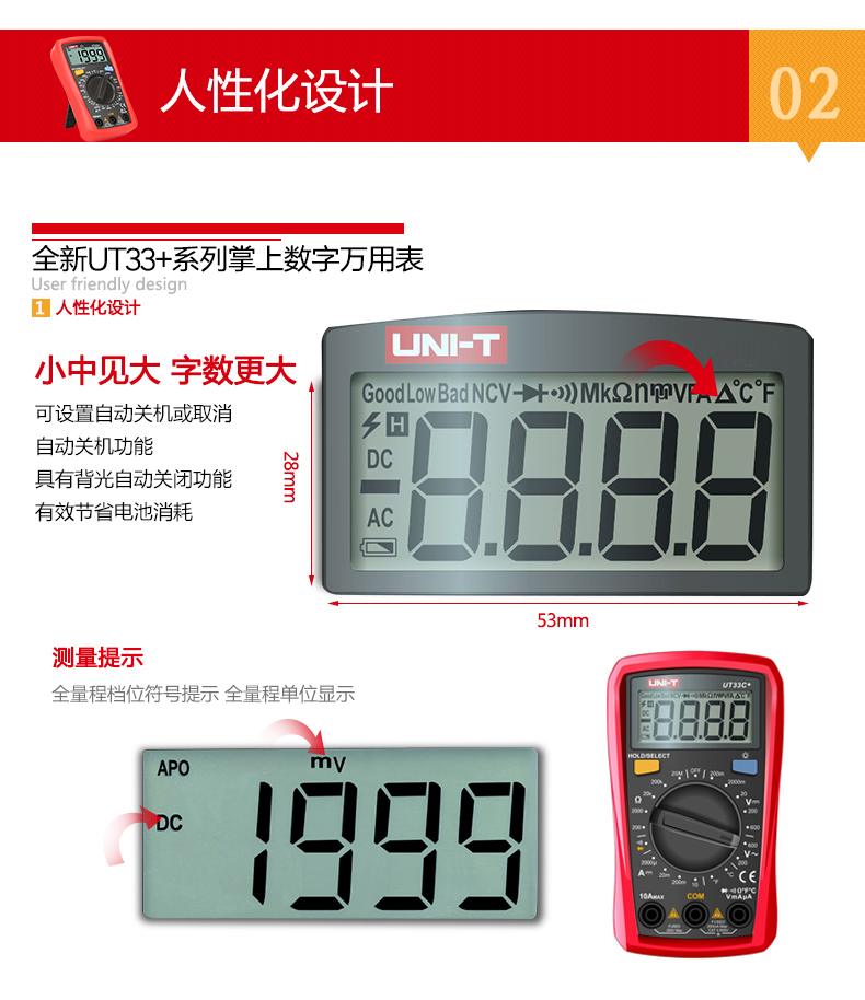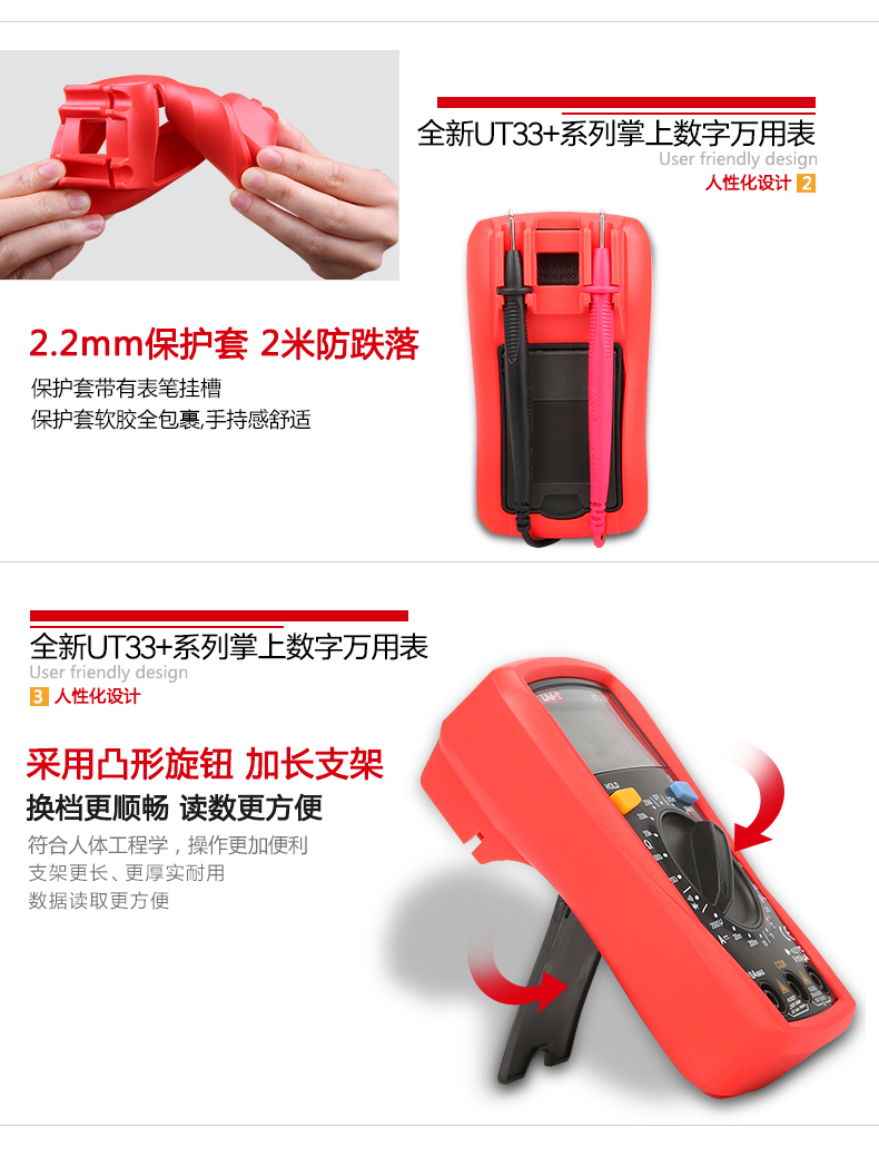 【官方直销】优利德UT33系列增强版自动防烧小型数显万用表自动量程背光万能表 UT33D+(智能防烧 电笔功能)